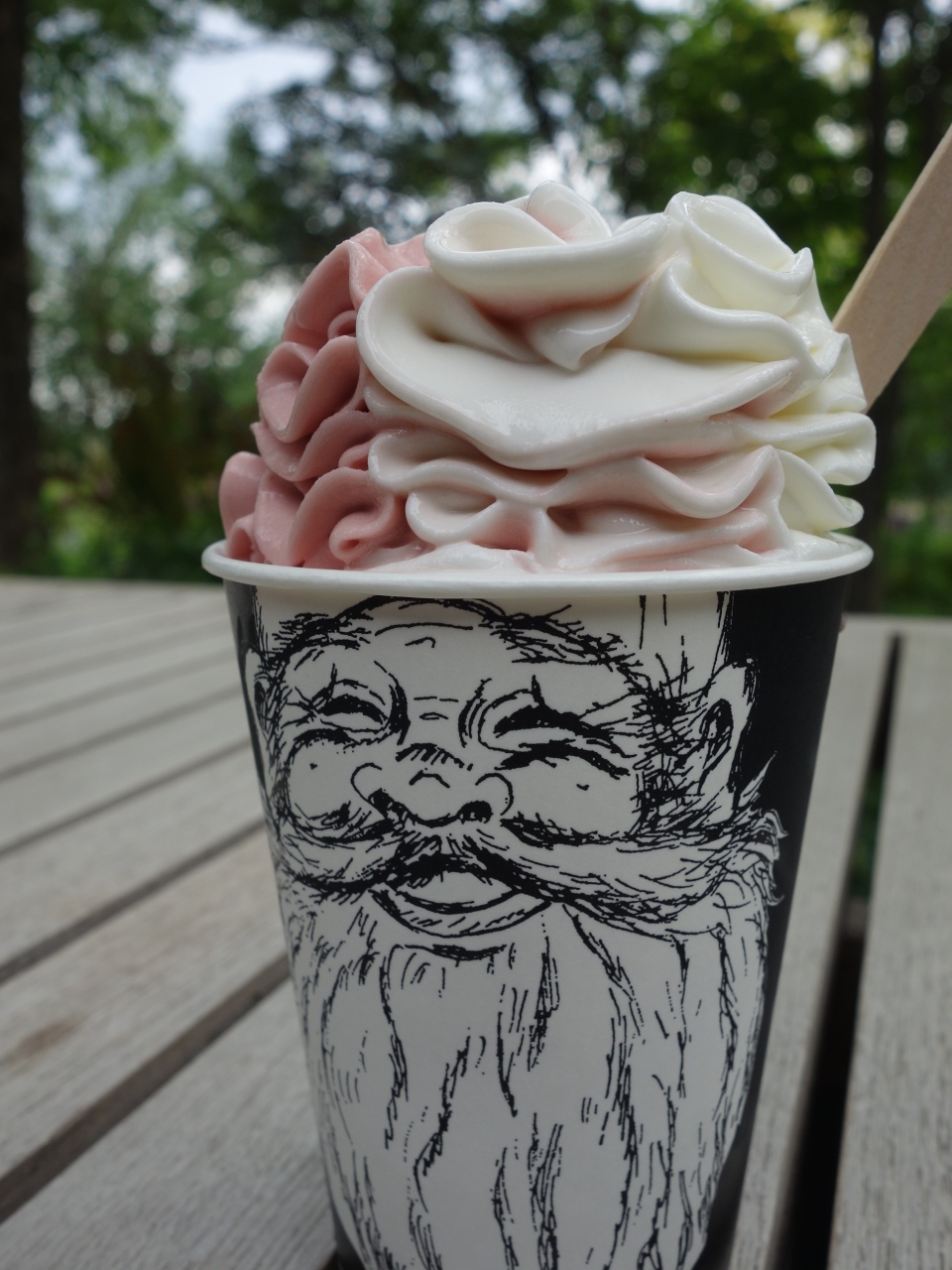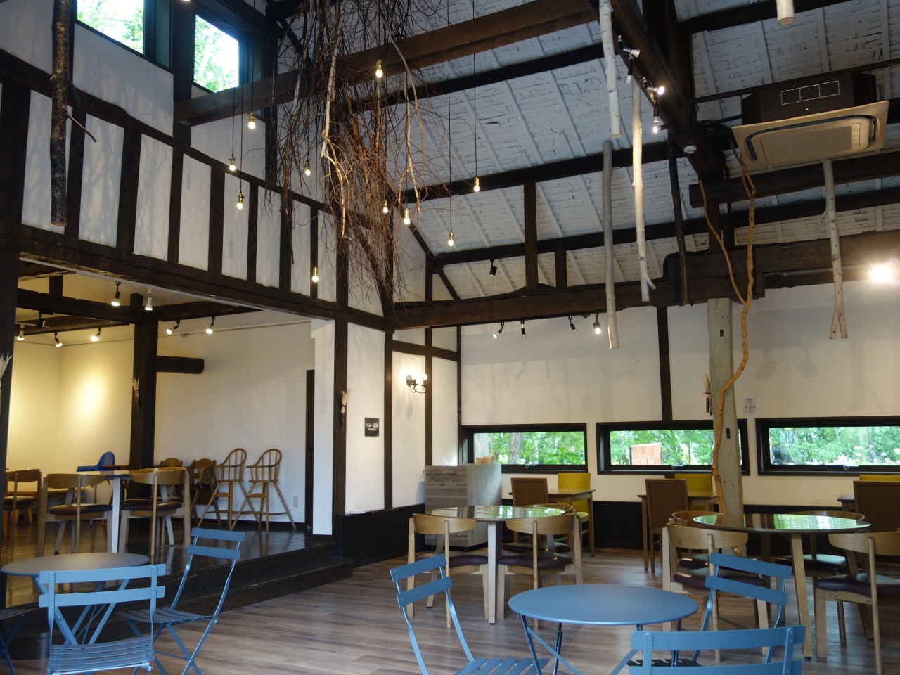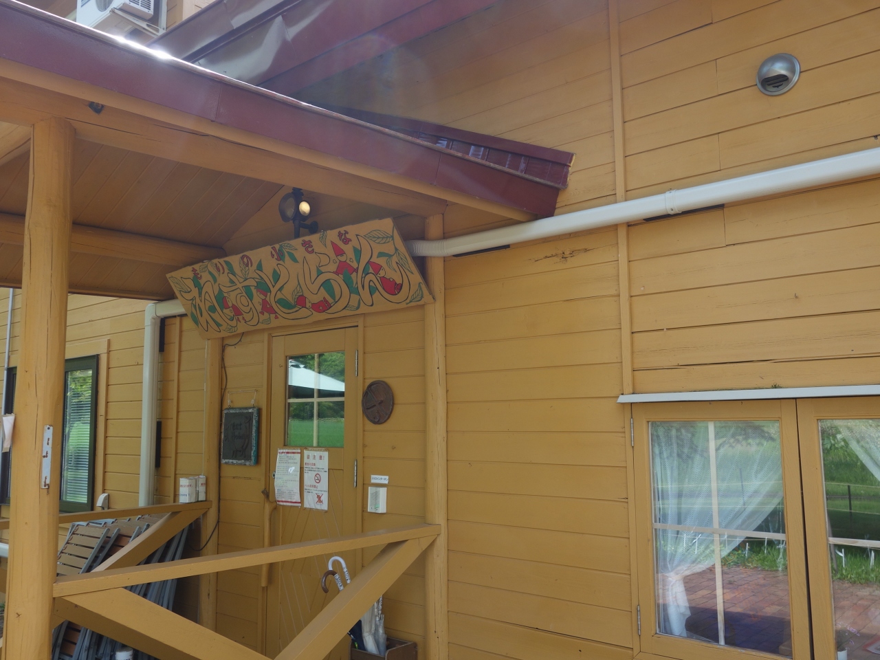 上野ファームの入口近くにある休憩処です。飲み物や軽食がいただけます。アイスクリームが定番でしょうか。木造の大きな家屋で,天井もたかく,ゆったりしています。テラス席もあって,上野ファームを見ながらのんびり出来ます。