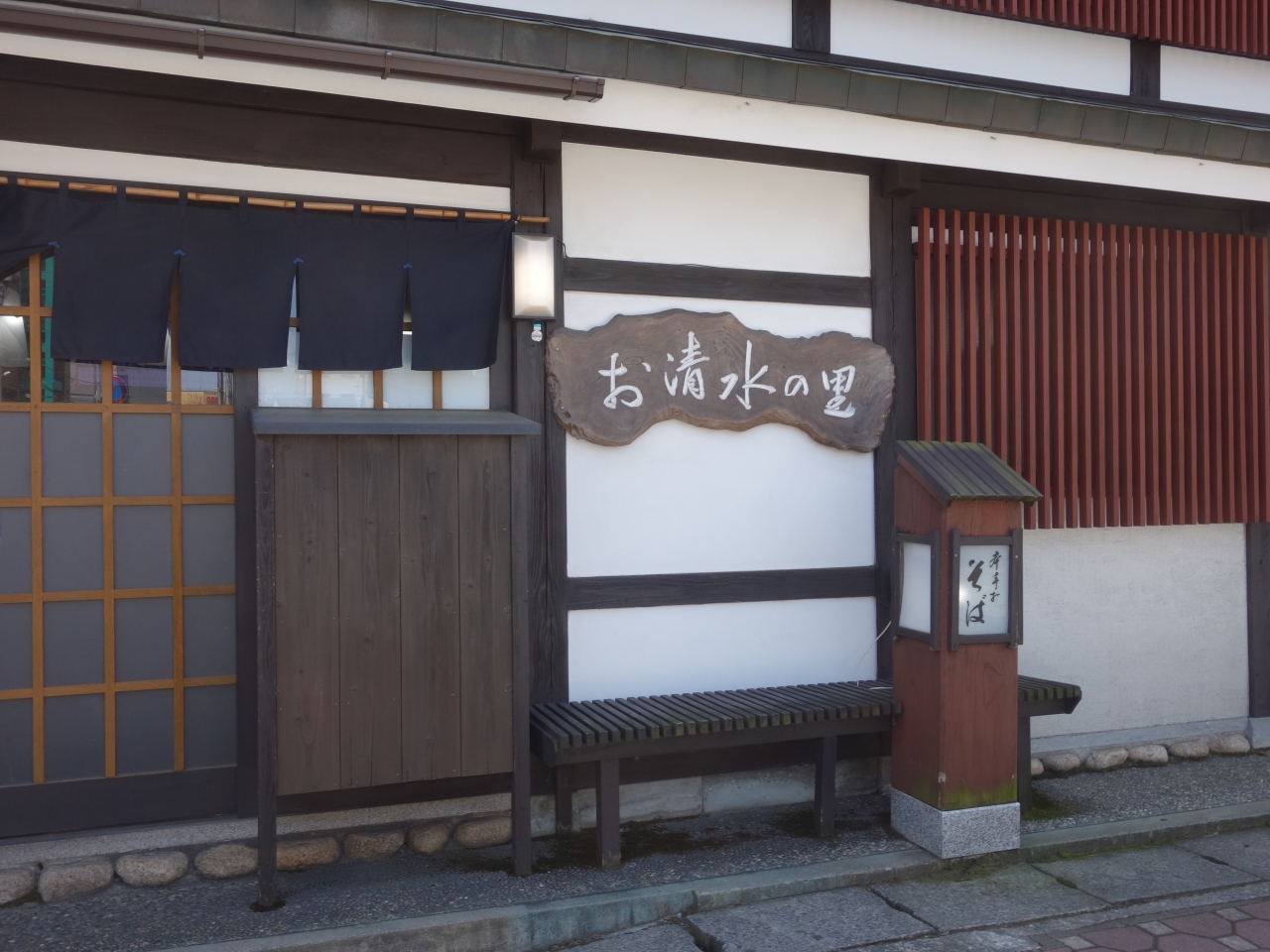 武生のほぼ駅前にあります。駐車場もあります。御清水という名水のとなりにあります。そう,うまい蕎麦は清水がないとつくれないのです。だから,この店の名前があるのです。辛味大根がついておろしそばば人気メニューです。そばはとってもおいしい。そして,辛味大根がとっても辛い。ともあれ,武生に来たらゼッタイ寄るべきお店です。