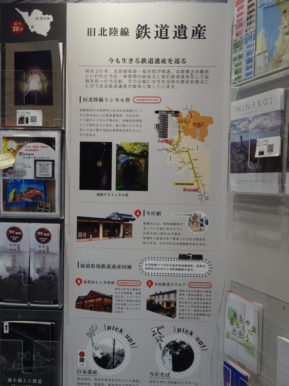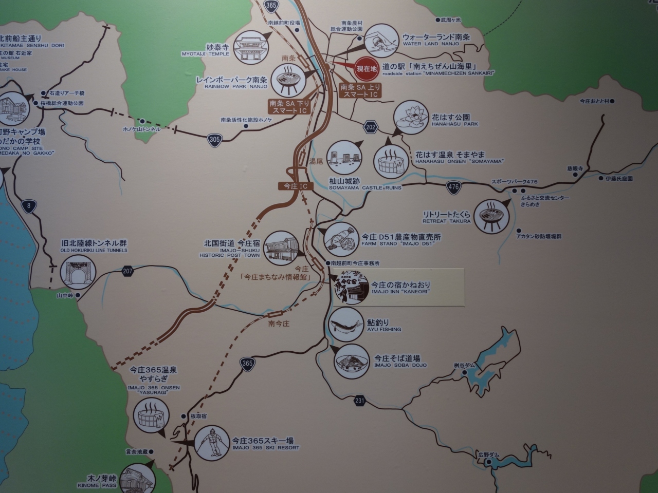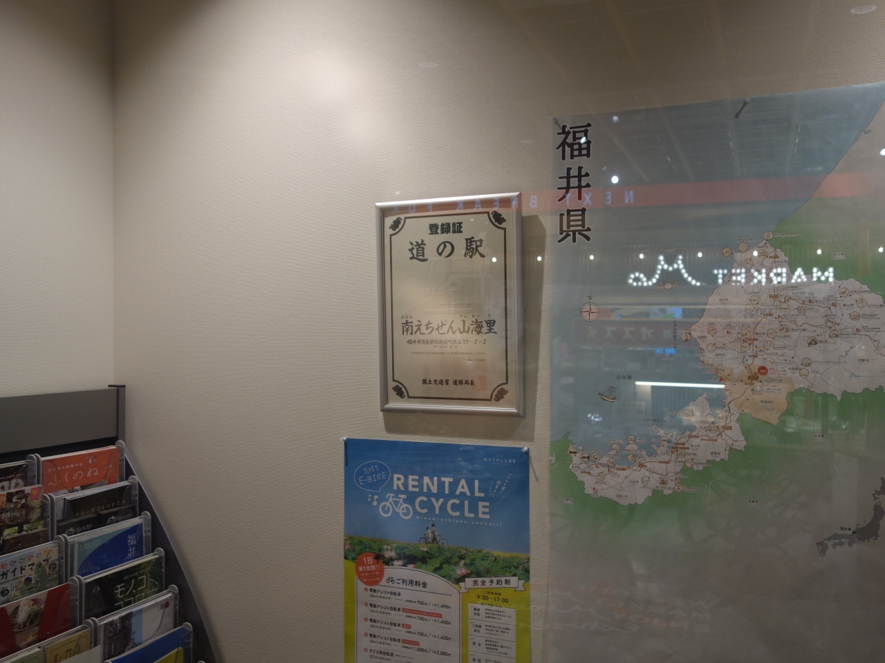 道の駅南えちぜん山海里。長い名前ですね。南条SA上り線に隣接してあります。周辺の観光情報に関する掲示はこっちの方が充実しています。建物もあたらしくてきれい。それほど大きくはありませんが変化には富んでいます。SAと道の駅,時間つぶしにはなります。