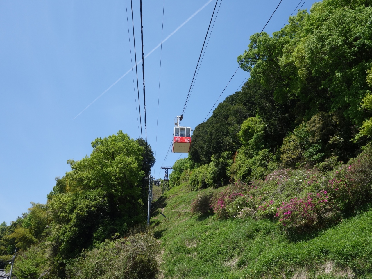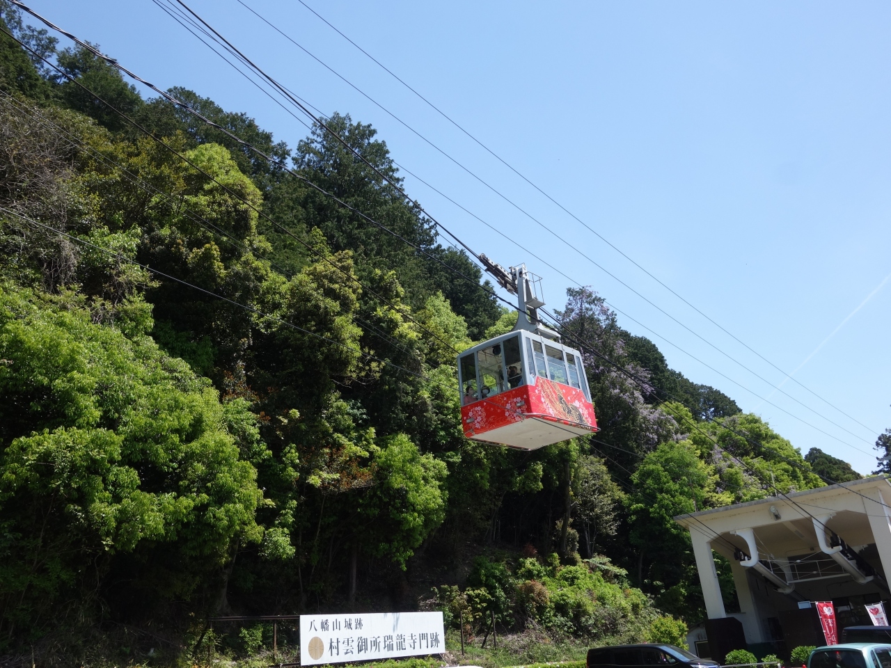 八幡山の頂上にのぼるロープウエイです。山の上から,琵琶湖と近江八幡の街がみおろせます。八幡のすぐ北に乗り場があり,駐車場も完備しています(道路は舗装はされていません)。駐車場が満杯になる事はないでしょう(奥へどんどんいけばよい)。近江八幡のアトラクションの一つです。
