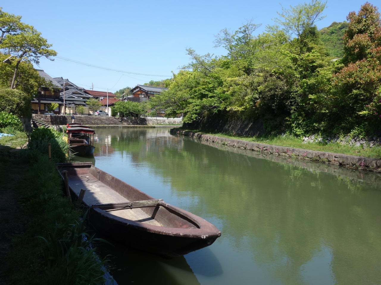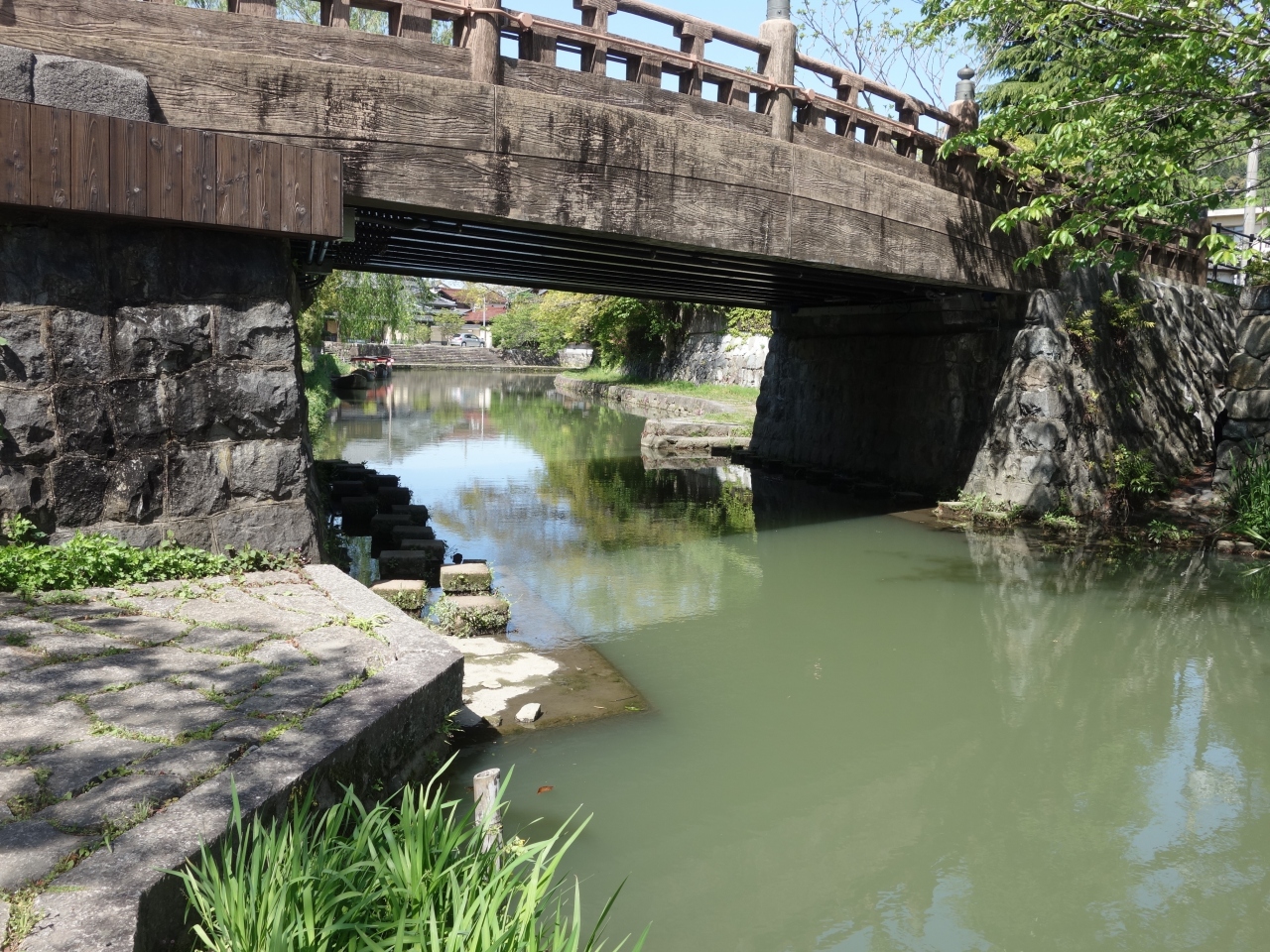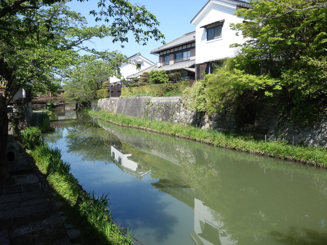 近江八幡市街の北を東西に流れる八幡堀。とてもよく整備されたお堀です。周囲の建物も昔のすがたをしのばせます。景観もすばらしく,日本有数の名勝といっていいでしょう。せっかくだから,舟遊びもいいでしょう。人気なので予約が必須です。