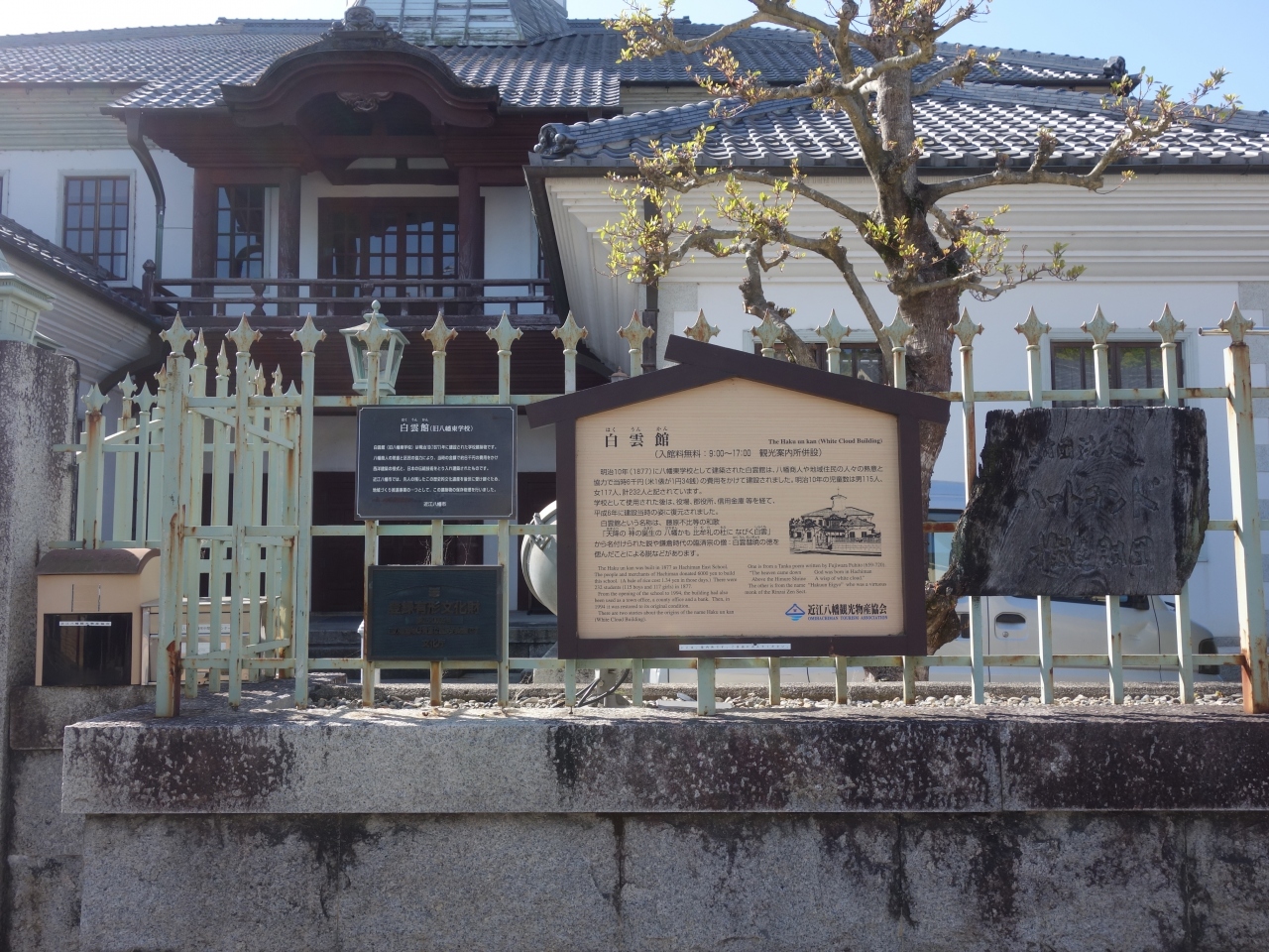 むかし,八幡東学校。いま,観光案内所です。明治時代の建物です。学校としてはちょっと小さい。むしろ個人住宅みたにみえます。レトロ調な洋館です。現在は観光案内所になっているので,近江八幡の観光情報を得るのにいいところです。