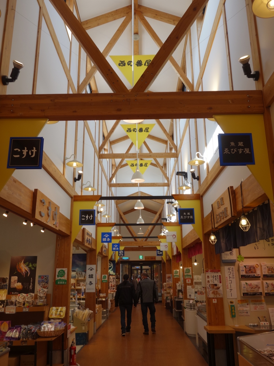 ひみ番屋街。とてもよい道の駅です。海産物がいっぱいあって,買いたいものばかり。つい,買いすぎてしまします。建物のふんいきもいい。お店の人も親切。イートインも充実している。隣には温泉もある。言う事なしです。