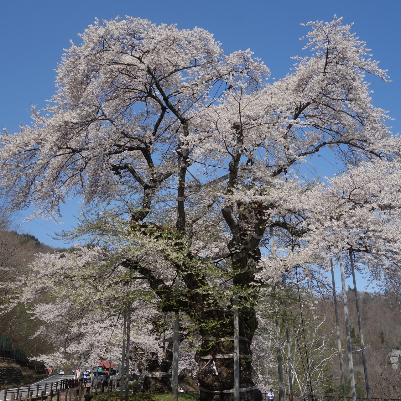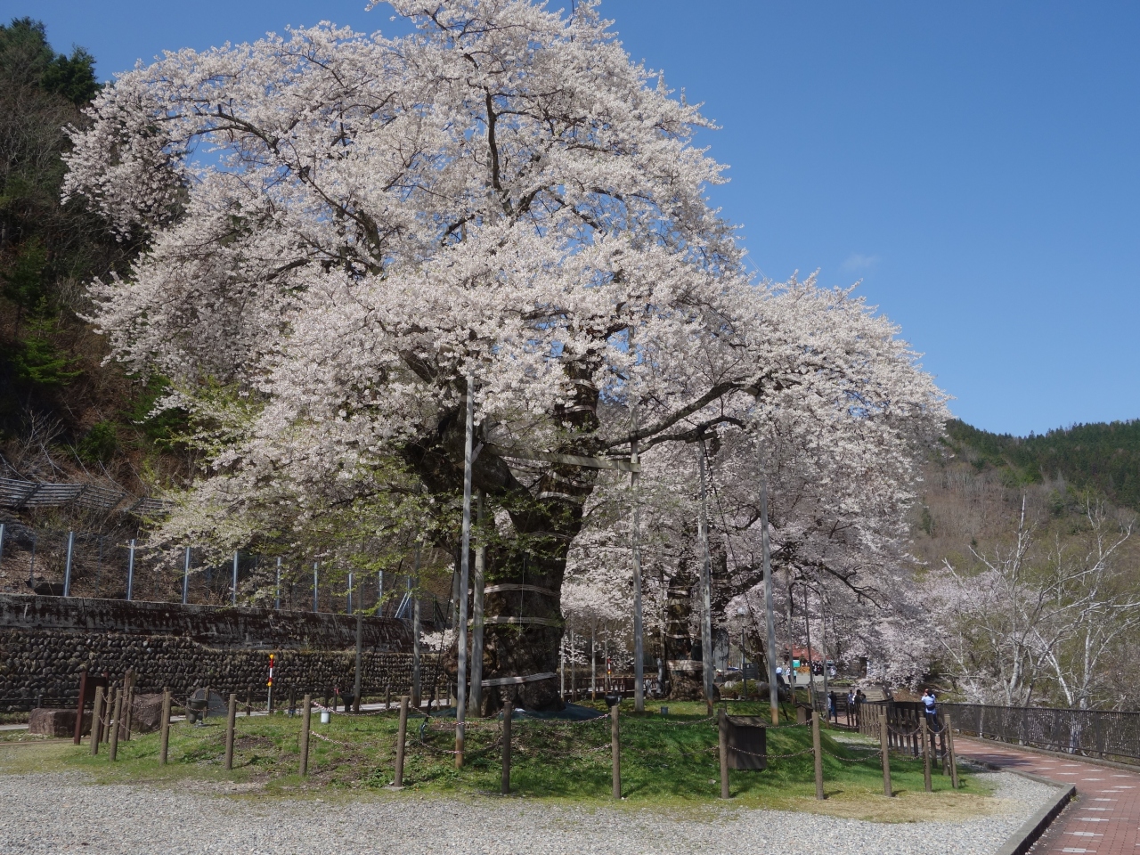 メインは2本のアズマヒガンザクラ。2023年は4月20日に満開でした。