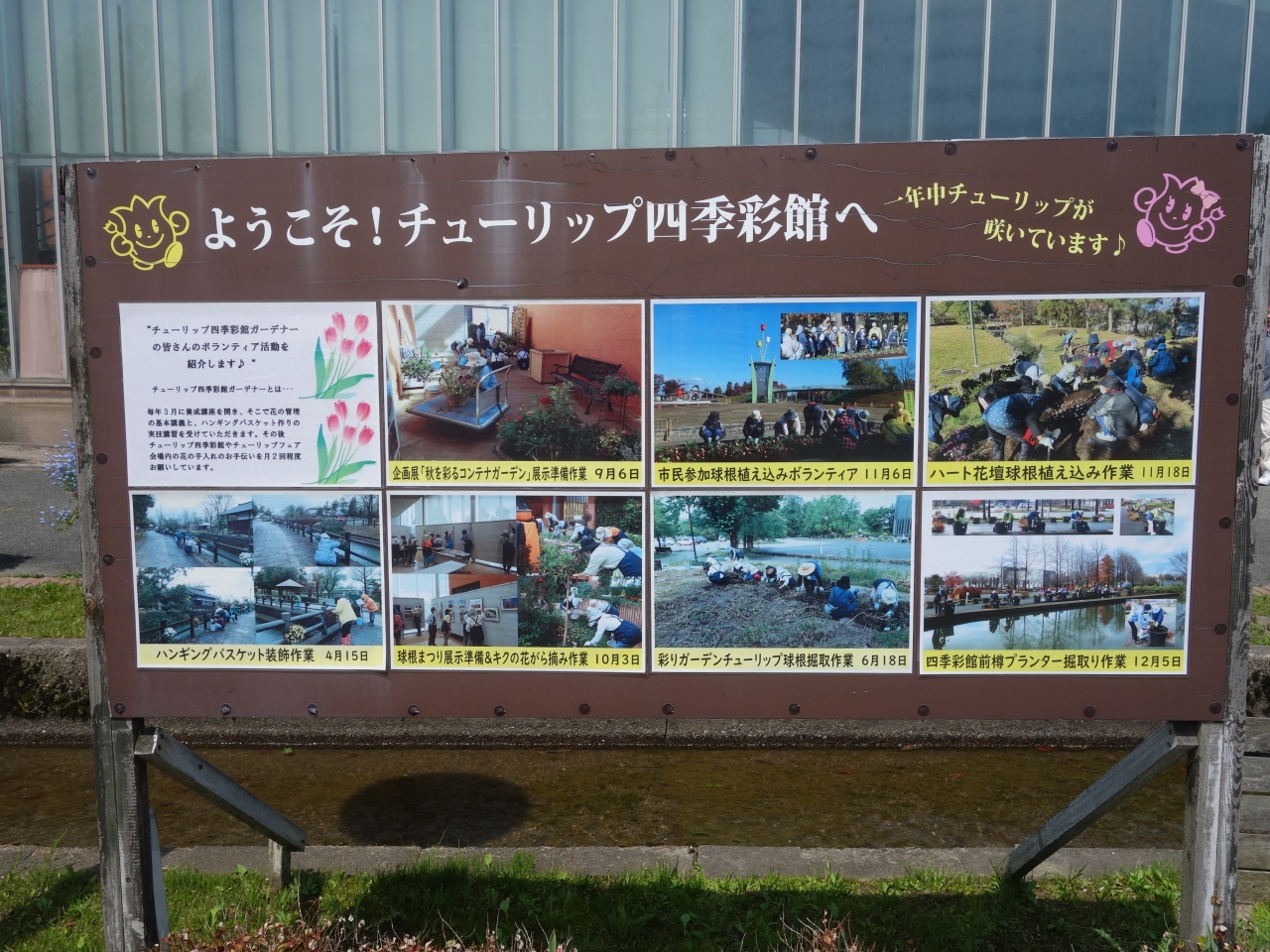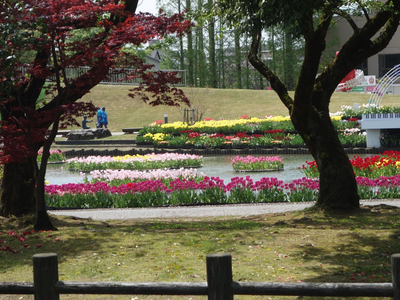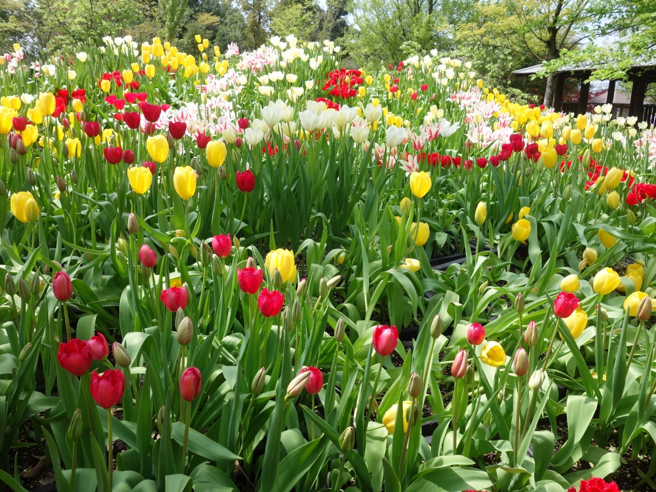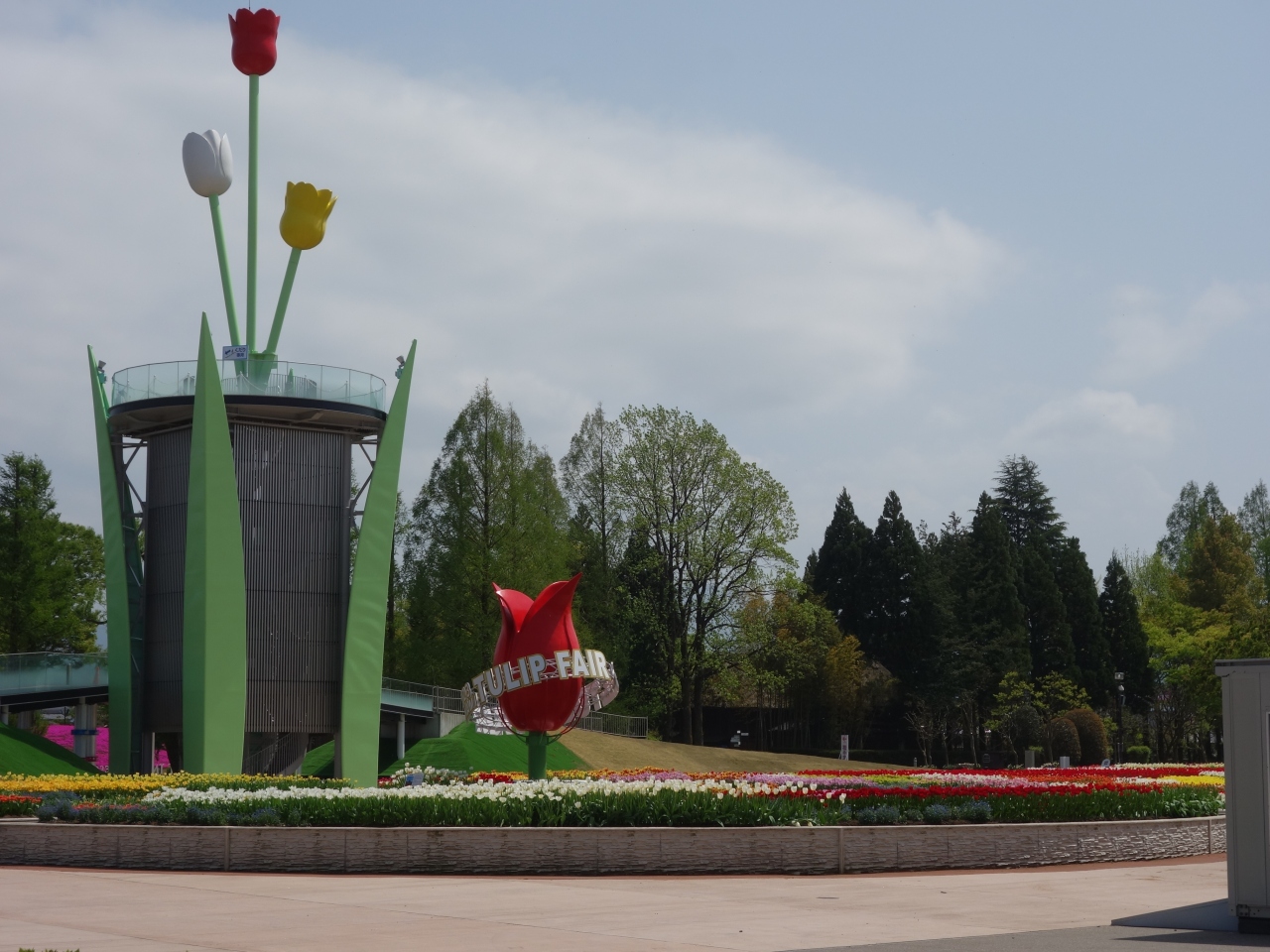 毎年,4月下旬からゴールデンウイークにかけてチューリップフェアが開催されますが,その準備と後片付けのために,一定の期間,園は閉鎖されます。中にはいれません。でも,中はのぞけますし,そもそも,園の周辺にもたくさんチューリップをみるところがあります。フェアにかかわらず楽しいところです。