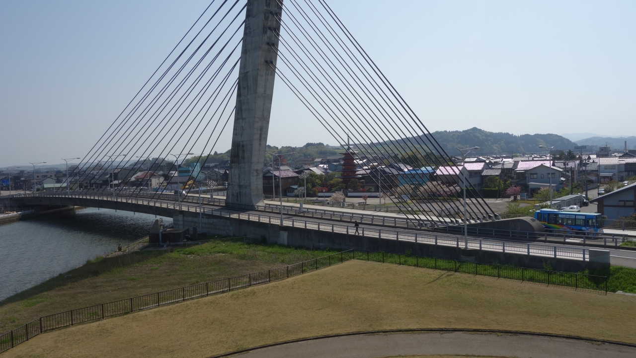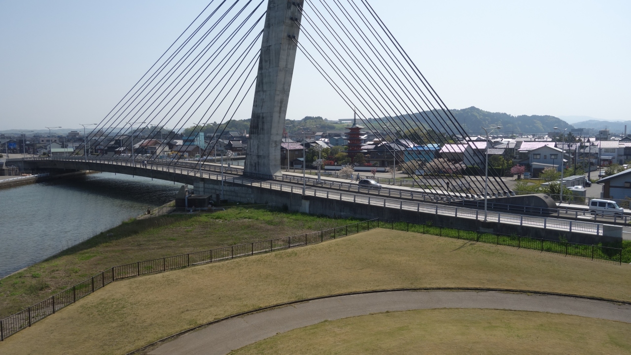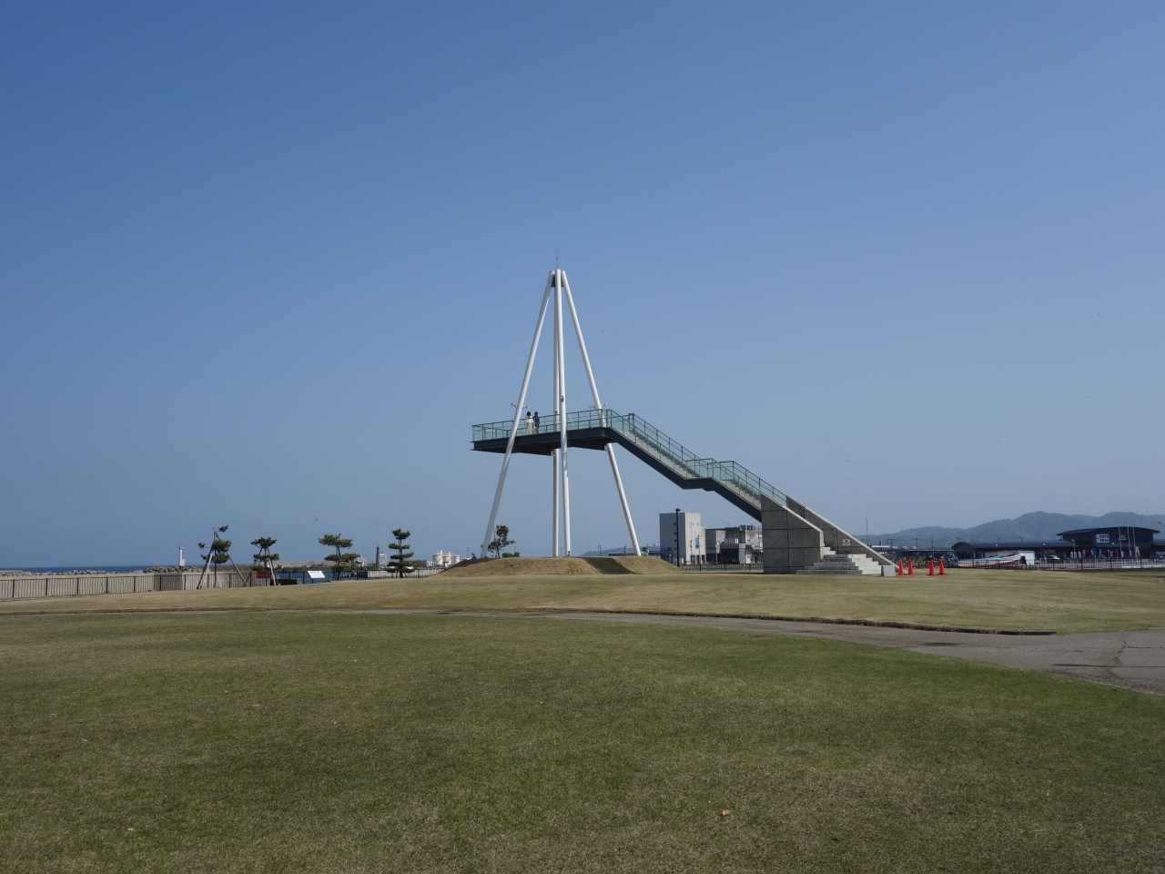 神武天皇の大きな像があります。氷見の町と日本海が一望できます。