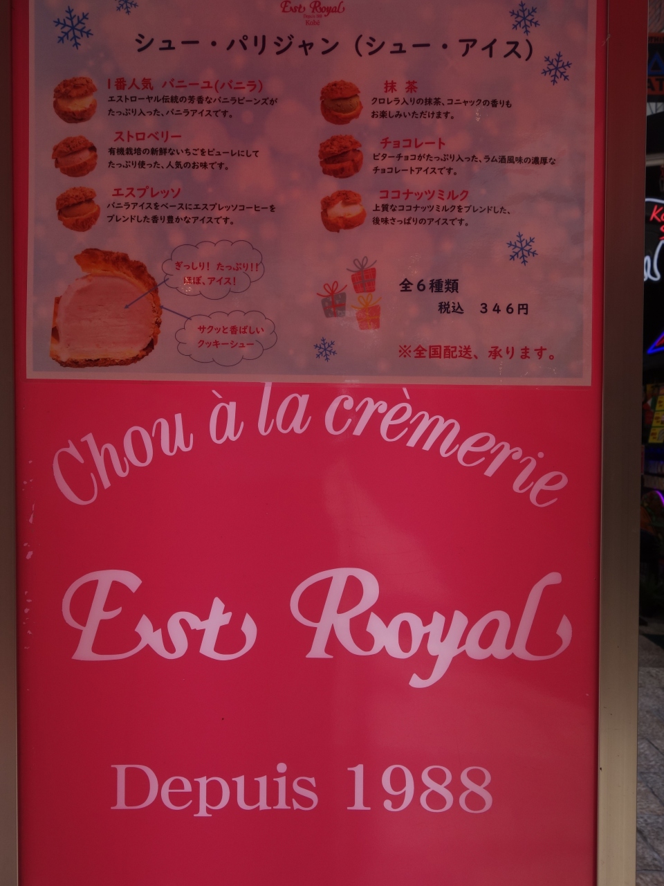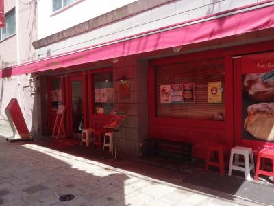 南京町の元町商店街よりにあります。ほそい路地です。あかいいろが特徴的な店舗です。シュークリームが看板商品ですが,もちろんほかの洋菓子もあります。ちょっと買って,ホテルやベンチで食べるのもいいでしょう。いいお店です。