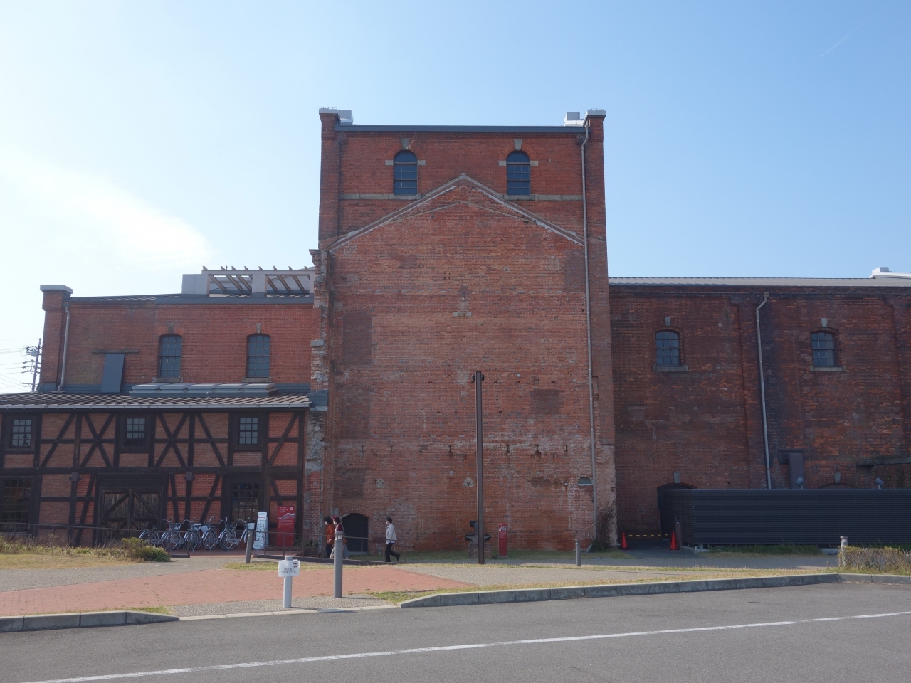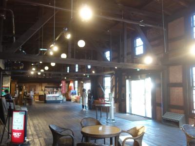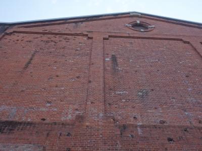 半田の観光地の一つです。駐車場がとてもひろい。こんなに観光客が来るのでしょうか。なかは、小さなレストランと、カブトビールを売っているお店。そして、会議室になる教室のような部屋部屋。展覧会をするようなところです。外面に機銃掃射跡があり、これが最大の見所です。