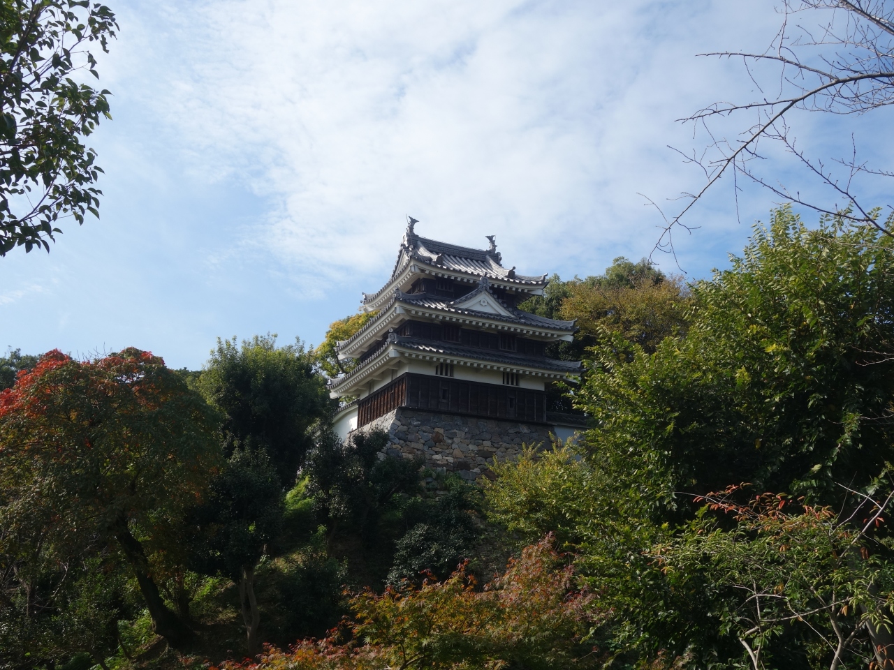 入り口へのアプローチが細い路地になっているのが意外です。玄関を広く美しくする設計とは、概念がまったく逆ですね。要するに、守りのお城なのです。正式名称が、「本丸丑寅櫓」。天守閣は別にあったようですので、ここ本丸は、櫓とも呼ばれていたのでしょう。三重の建物です。天守についで、二番目に高かったといいますが、天守が復元されていないので、現在は、ここが一番高い。きれいに復元された、外見のよいお城です。