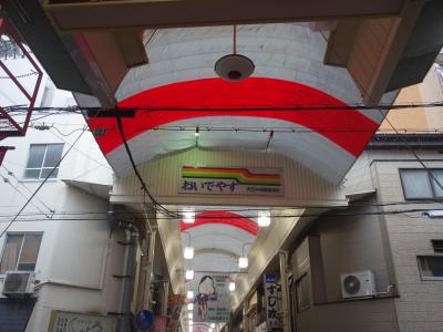 「おいでやす通り」として売り出している「天五中崎通商店街」。昭和の香りのするレトロな商店街です。現代では,むかしからの商店街はどこも苦戦していて,閉まっているお店ばかりのところがあるなか,ここは結構善戦しているようです。いろいろと工夫したお店が話題になっています。場所もいいので,散歩するにはよいところです。