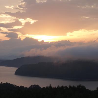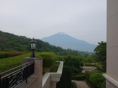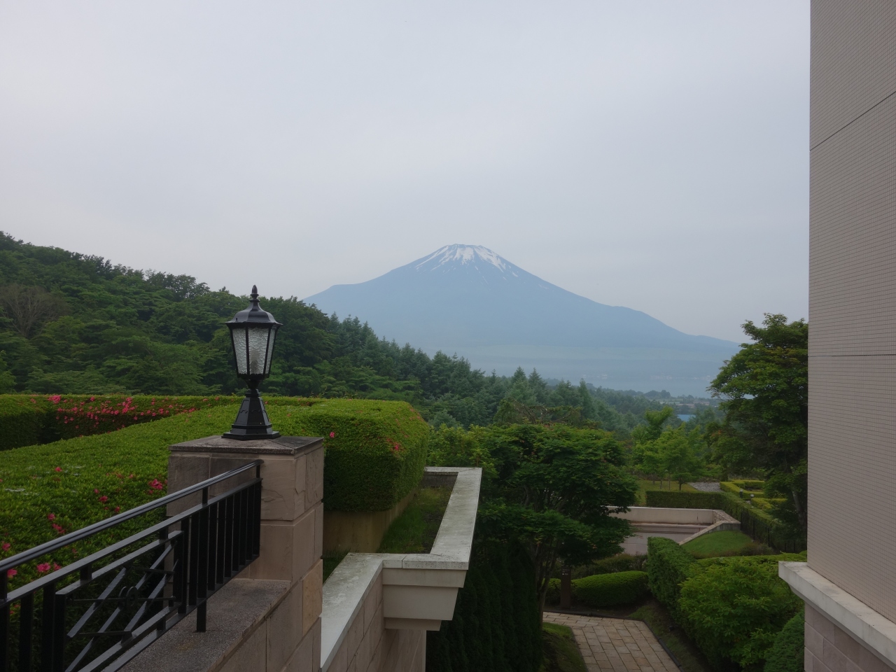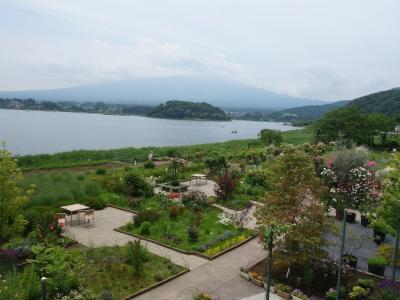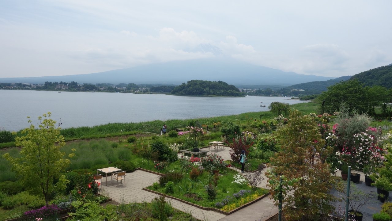 自然生活館の2階の窓際からの眺めはサイコー。河口湖と富士山を独り占め。