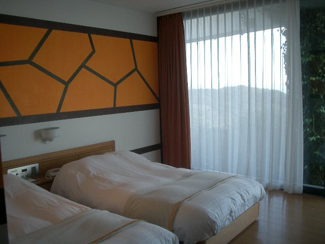 岡の上で眺望が180度広がる瀬戸内海を見渡せる最高の部屋。たった6室しかない棟。モノレールでしか行けないところ。セキュリティー万全。池もあり、滝もある(岡の上なのに。)。バーもある。贅沢とはこういうところを言うのでしょうか。