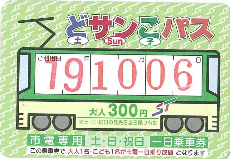 市電は一回の乗車が170円です。でも、土日には、乗り放題のパスを300円で売っています。2回乗ると元が取れます。ぜひ、「どサンこパス」を買いましょう。