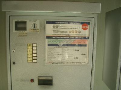 写真のような機械に切符を差し込むと、小さな文字で、日にちと時間が刻印されます。(なんでこんなに小さな字にするのかな。)