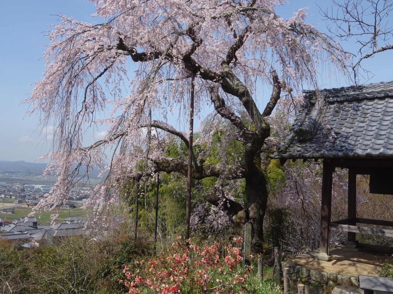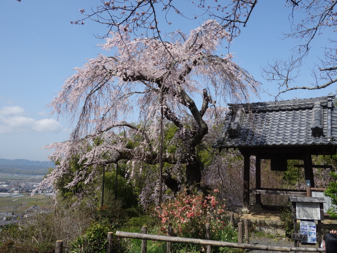 枝垂桜好きの人には必見の枝垂桜です。歴史を感じさせます。クルマでないと、いくのに少し不便ですが、わざわざここまで来る價値があります。やますそにあり、大和盆地をみおろしています。大きさや勢いはかならずしも一級品ではありますが(又兵衛桜には見劣りする)、それでも、とてもよい枝垂桜です。
