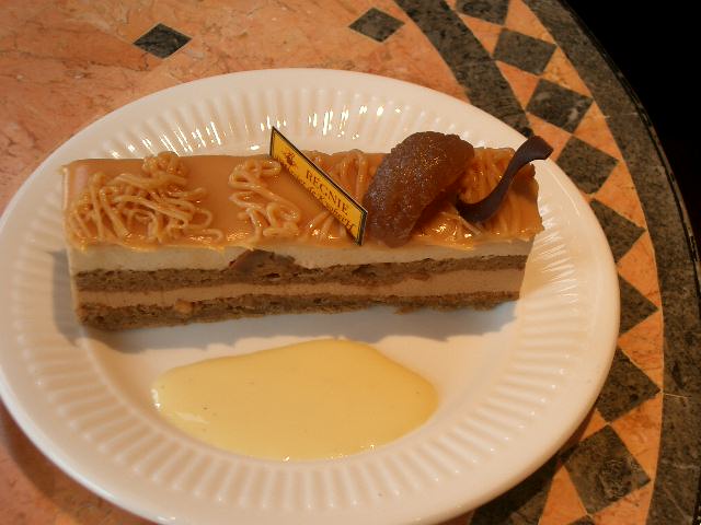 上小田井と庄内公園の中間にある「Regnie」。ケーキを買う人がいつも20人ぐらい並んでいます。中の喫茶でケーキとコーヒーをいただきました。生クリームが特に美味しくて気に入りました。甘さを抑えた大人の味です。スポンジはきめが細かく、かために出来ていますが、これも美味しくいただきました。写真は、「マロン・キャフェ・マキアート」。看板ケーキのひとつです。ちょっとほろ苦くて大人の味です。こんなお店が家の近くにあったらいいのになあ。。。