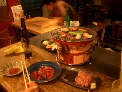 写真のように七輪で焼きます。「ジンギスカン」という名のマトンは生でも食べられるほどの新鮮さ。筋も無く、においも無く、とても美味しくいただけます。とっても気さくな庶民的なお店です。また来なくっちゃ。場所も便利です。