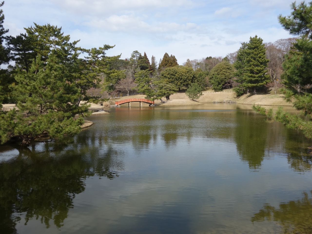 旧大乗院庭園。奈良ホテルに隣接する,回遊式庭園。あかるい。