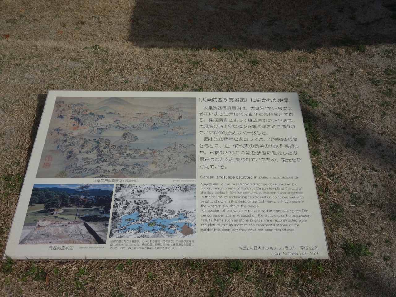 奈良ホテルの南側に「旧大乗院庭園」があります。奈良ホテル側(チャペル側,北側)と南側に入口があります。南側の入口が一般客用の入口で,若干の展示物もあります。休憩施設のもなっています。これを「文化館」と称しているのでしょう。ホテルの宿泊客は入場券がもらえます。時間があったらどうぞ。芝生をしきつめた,回遊式の庭園です。樹木はすくない。あかるい雰囲気です。