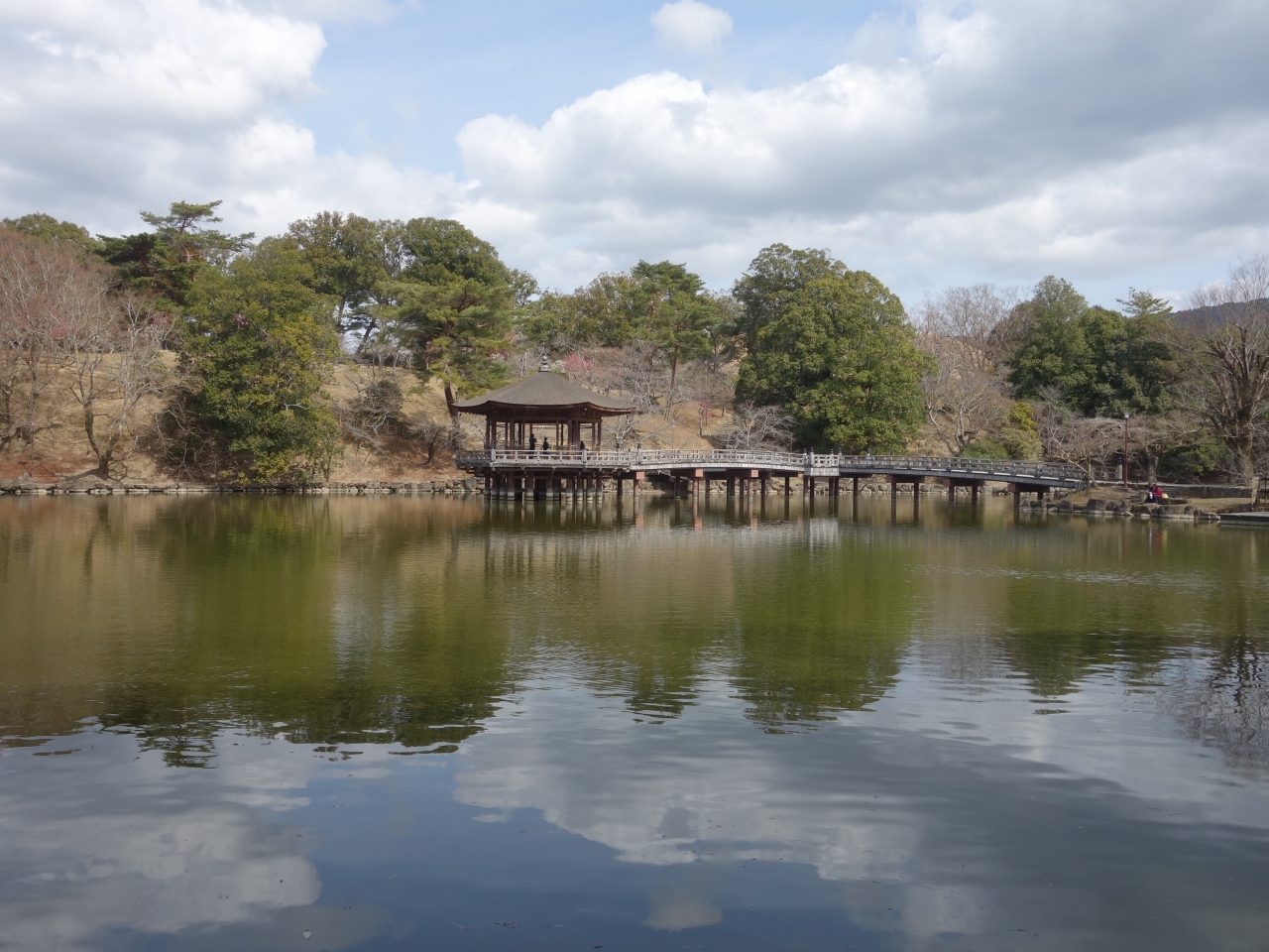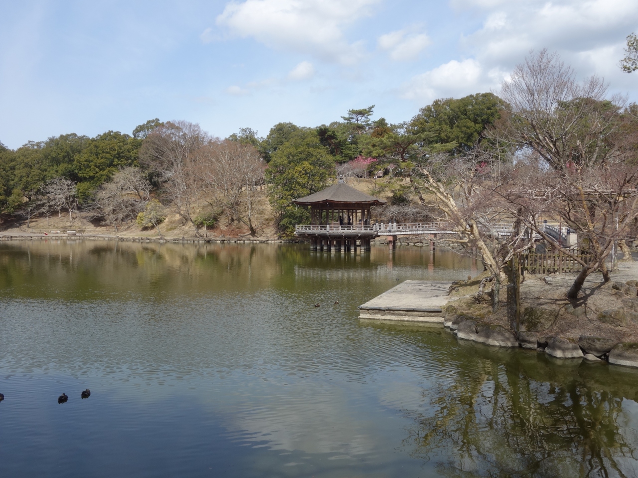 奈良公園を春日大社のほうに東に歩いていると,一番先にある池が鷺池です。東大寺に真南にあたります。浮見堂があるので分かります。この池の西に荒池があるのですが,鷺池は荒池よりきれいで雰囲気があります。(荒池はもっときれいに整備すべきだと思うのですが。)奈良公園散歩の途中でこの池の周りを歩くのもいいでしょう。