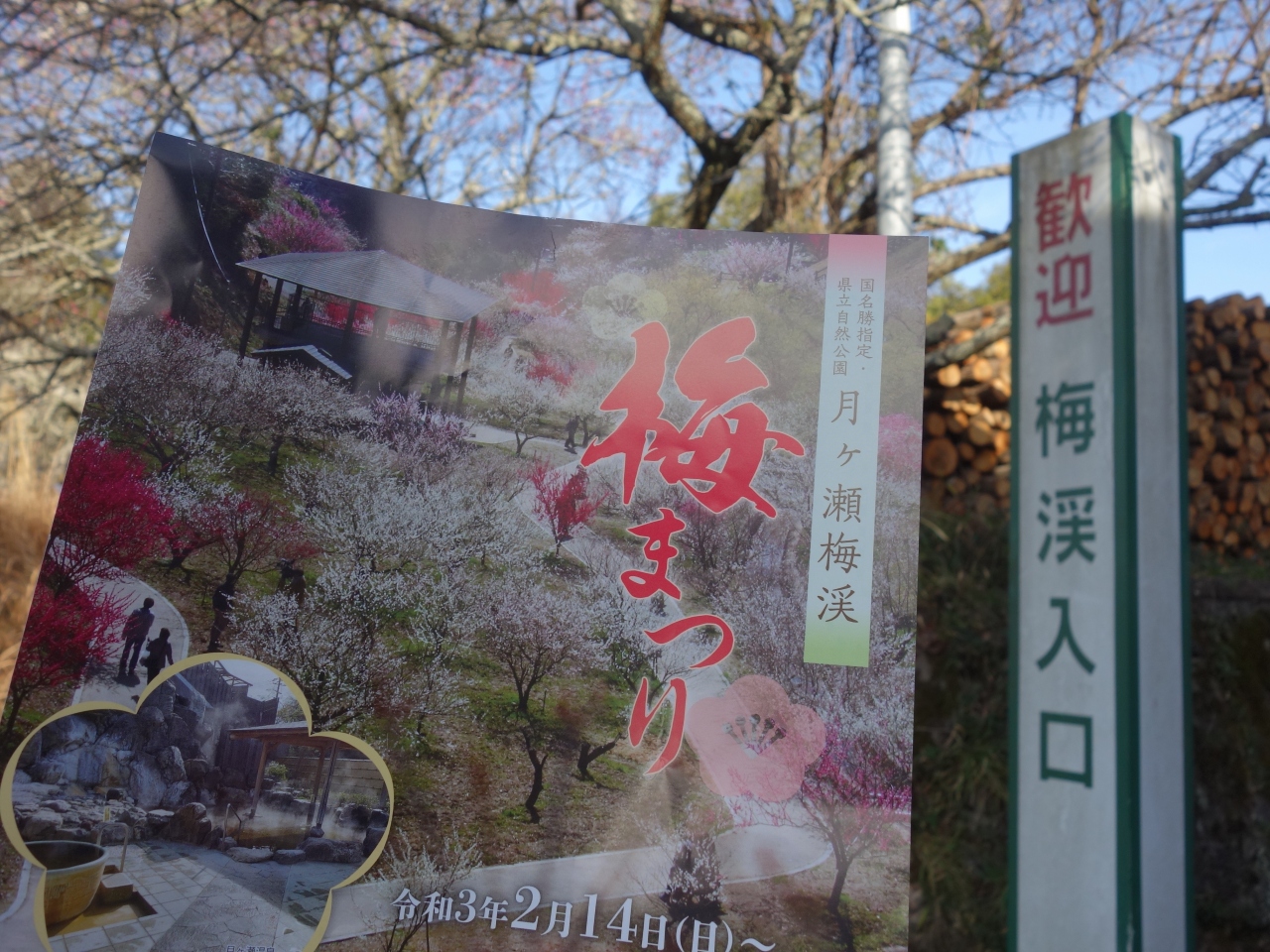 月ヶ瀬梅渓梅まつり。2021年は2月14日から3月28日。クルマは上のほうにとめるといいですよ。
