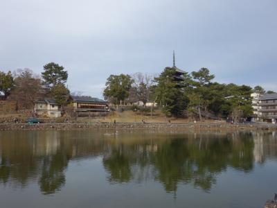 猿沢池は現在工事中で,まったく,雰囲気がちがいます。水が澄んでいる。亀がいない。