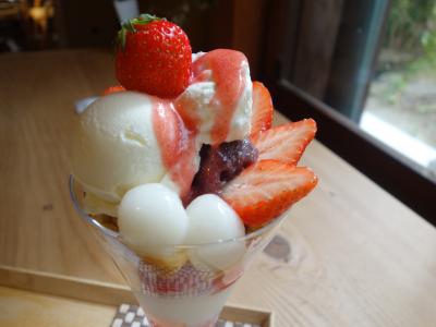 旧鴻池邸を大阪から移築した建物を使っています。外観はとってもおしゃれ。白壁がぐっと周辺の雰囲気を引き締めています。喫茶するところは,外からは見れない部分。お庭には縦が植えてあります。ガラス戸も木製でとてもいい。シックな感じです。今回はパフェをいただきましたが,いちごにこだわりがあるお店のようです。とてもいい雰囲気なので,何度でも行きたいところです。
