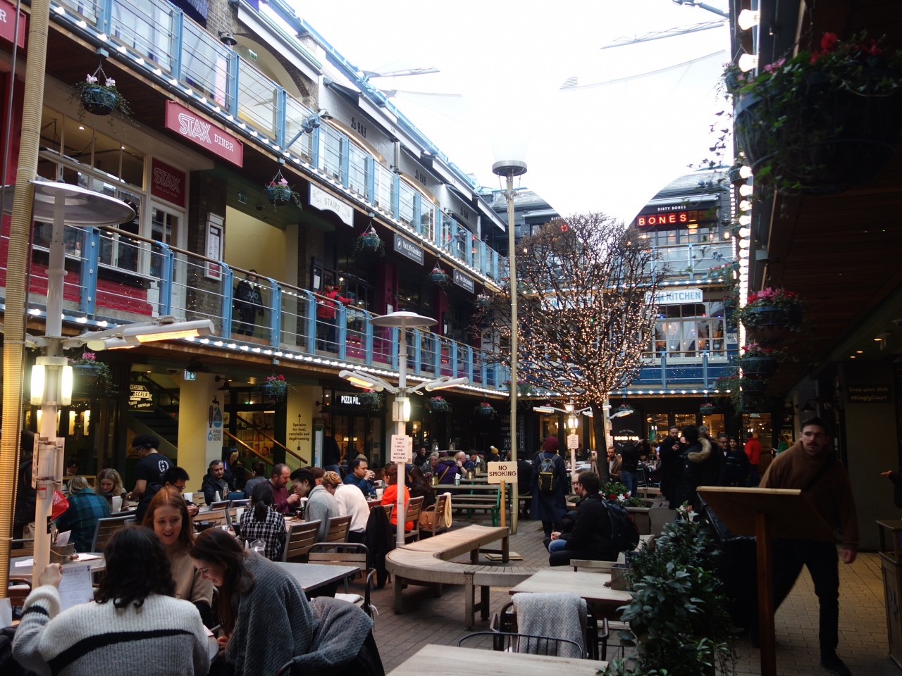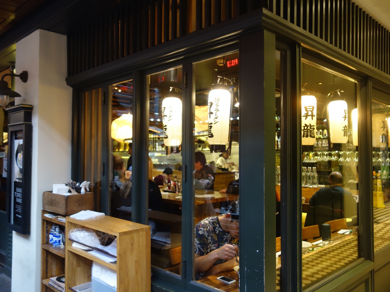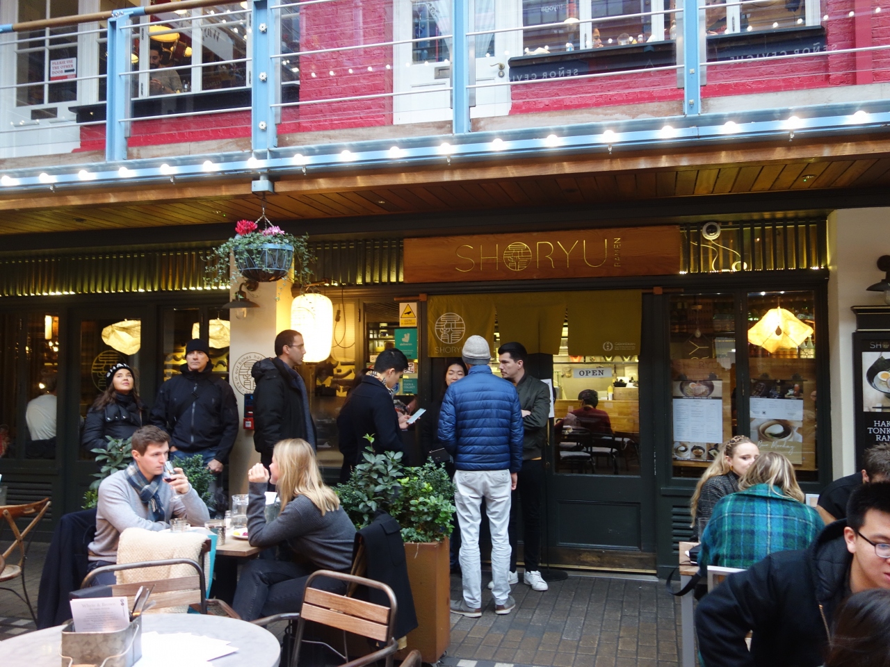 Carnaby Street の一角に,横道として,Kingly Court があります。細い道を通り抜けると,中庭みたいのがあり,レストランがずらっとならんでいます。その中の一軒が昇竜ラーメンです。人気店でいつも人でいっぱいです。みんなおいしそうなラーメンをたべています。