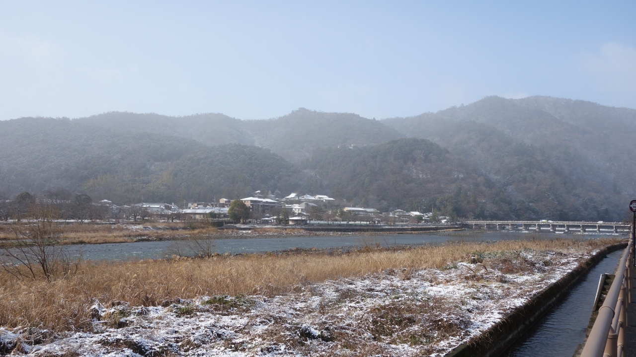 嵐山で桂川にかかる橋。自動車も通ります。両側に歩道がついています。とくに特徴があるわけではありませんが,人気の橋です。ここからみる嵐山の景色がすばらしいからでしょう。歴史ある橋で,いろいろとニュースにもなります。有名な橋です。