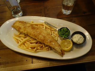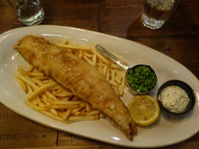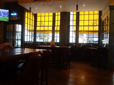 オックスフォード・ストリートに近いので、もうすこし高級なレストランかと予想したのですが、意外と庶民的なお店でした。どちらかというと、スポーツ・バー的な雰囲気のお店です。おおきなテレビ画面がいくつも店内にあって、サッカーを放映していました。ちょっと立ち寄って、ビールだけ立ち飲みして、すぐに出て行く若いお客さんもおました。料理の味は、まあ、普通です。おいしくいただけました。