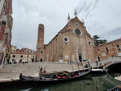 サンタルチア駅からブラブラ歩くこと約20分、大きな教会が見えてきます。鐘楼もありとても目立つ存在です。また正面前には運河も走っていて船で着けることも可能かと思います。タッパの高い教会で、外観は割と質素ですが、中は意外と豪華な装飾が施されています。