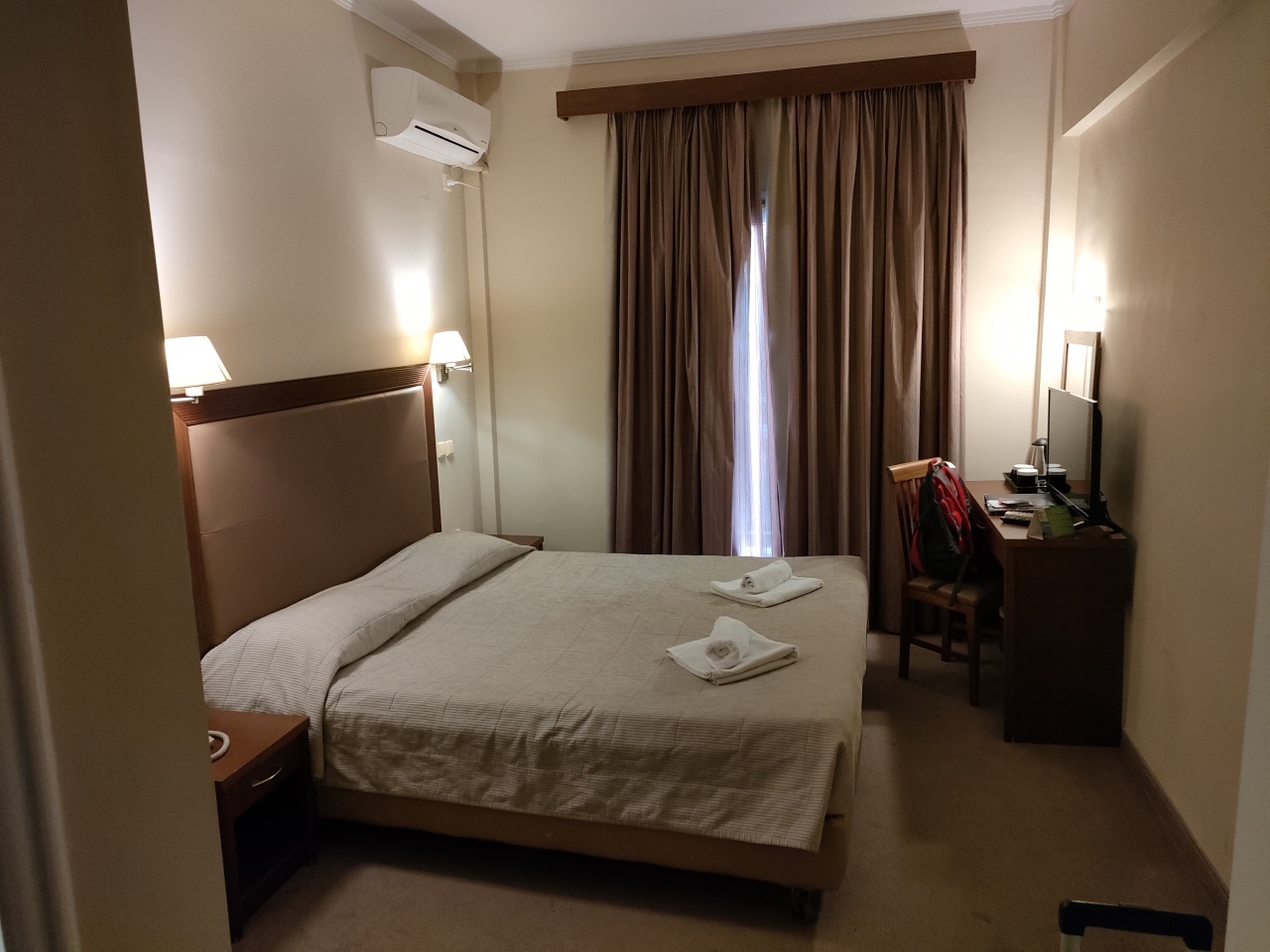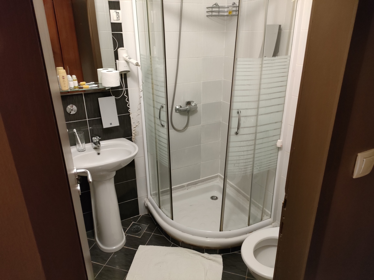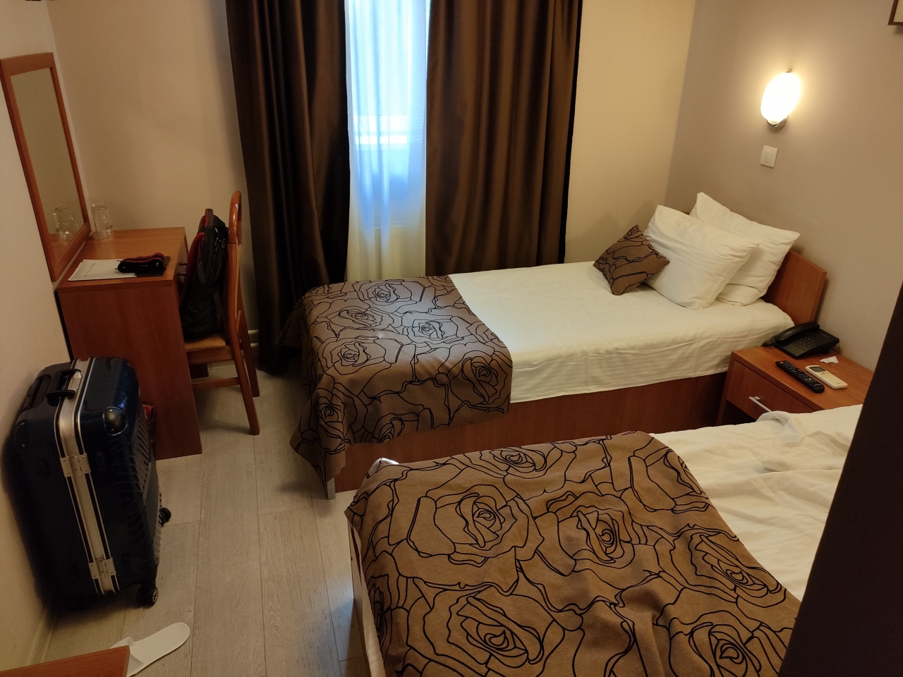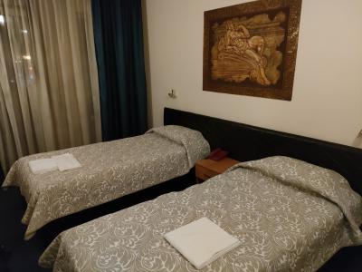 ソフィア空港から地下鉄4号線に乗ってSerdika下車、駅を出て徒歩10分くらいで到着しました。ホテルの前は公園のようになっていて、トラムの乗り場もあります。そのため公園側に面した部屋はけっこうトラムの走行音が気になります。古い旧型のトラムが多いので朝早くから気になります。ホテルはやや古いですが、清掃は行き届いているので許容範囲です。朝食もおいしくいただきました。