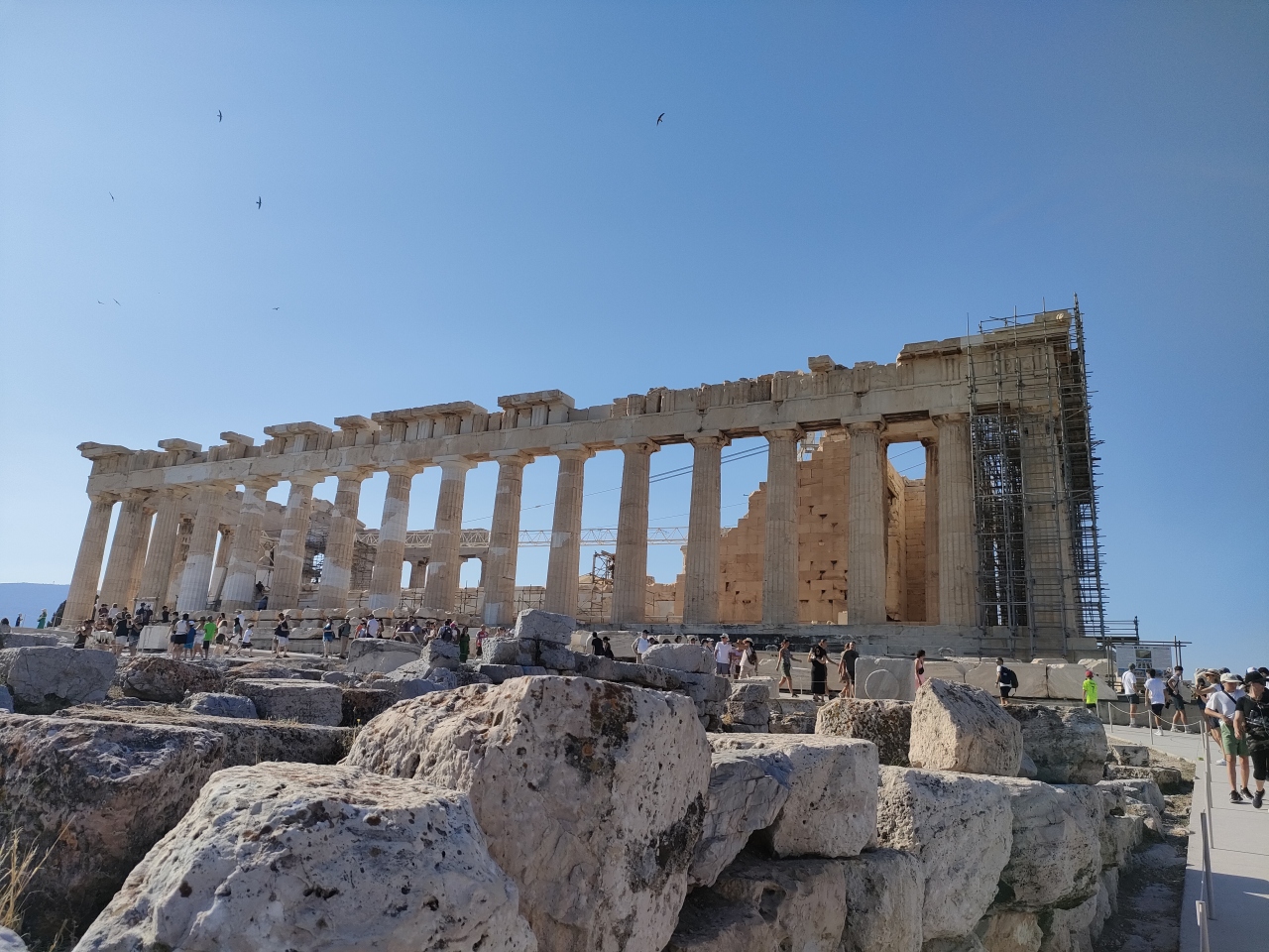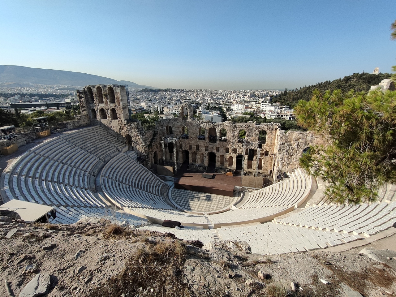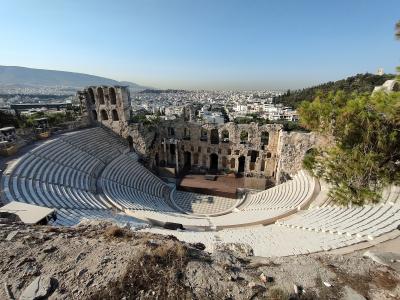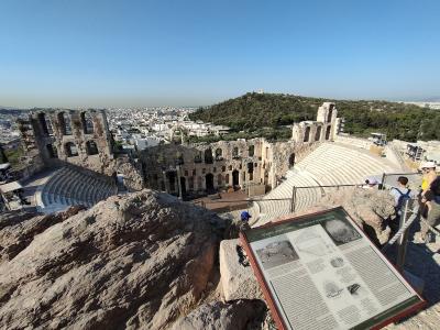 アクロポリス神殿のゲートを入って最初に目にする建造物です。上から見下ろす感じなので全体像がよくわかります。内部に入ることはできませんが、時期によっては実際の音楽堂として活躍しているそうです。収容人員も多く入り、立派なコンサートが開かれていることでしょう。