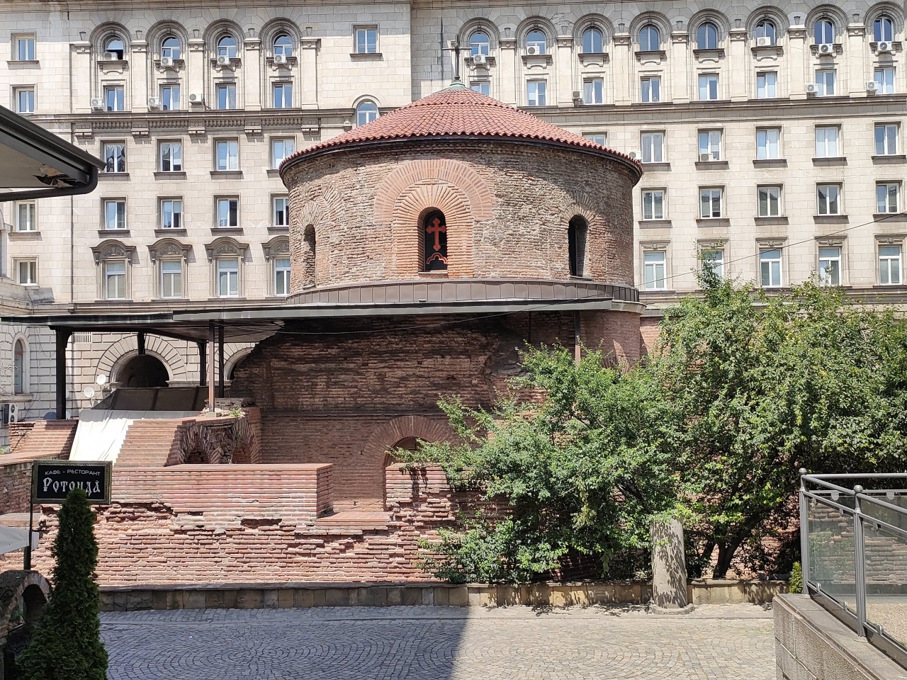 地下鉄Serdika駅から歩いてすぐのところにあります。周りはビルに囲まれているため、とても変わった雰囲気を出しています。史跡の中にある教会といった感じです。レンガを積み上げた円形の建物なので他の教会のような重々しさはありませんが、小さいながらも目立つ外観をしています。