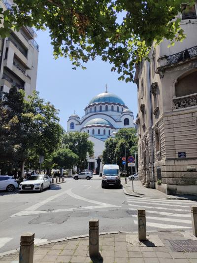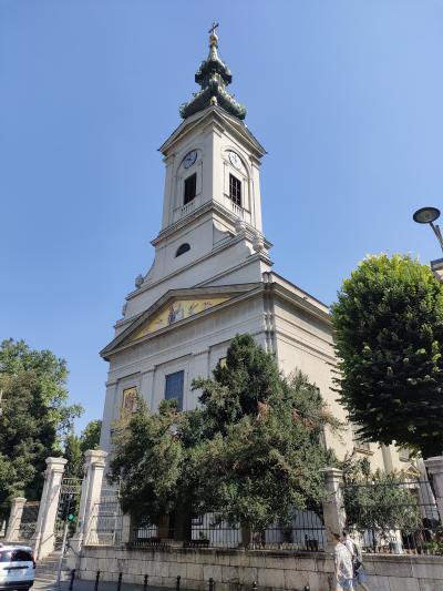 市内中心部からベオグラード要塞に歩いて行く途中で見つけました。まわりには高い建物はないのでクロックタワーがよく目立っています。内部は華美ではありませんが厳かな感じがします。暑いさなかだったのでしばらくの間、内部で休息をとらせていただきました。ありがとうございました。