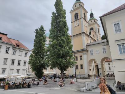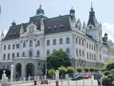 リュブリアナ市内を散策していて、疲れたのでコングレス広場で一休みしていました。ふと見上げると宮殿のような立派な建物が目に入りました。調べてみるとリュブリアナ大学と出ています。とても大学には見えません。博物館や美術館なら理解できますが。ここに通っている学生さんは幸せですね。