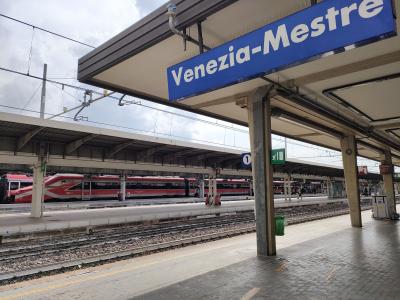 ヴェネツィア・サンタルチア駅のおとなり、本土側の最初の駅です。島側にホテルを探したのですが、なかなか適当なのが見つけられず、メストレで探すことにしました。結構多数のホテルがあり、この場所に決めました。駅は比較的大きくて、ショップもたくさんあり、便利です。人は多くコンコースは混雑していました。