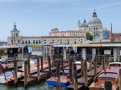 サンマルコ広場から少し南に歩くと運河が見えます。ここがサンマルコ運河です。目の前にはサン・ジョルジョ・マッジョーレ聖堂、また少し右手を見ればサンタ・マリア・デッラ・サルーテ聖堂が見えます。多数の船やゴンドラが行き交い、さながらヴェネツィアの銀座通りといったところでしょうか。