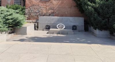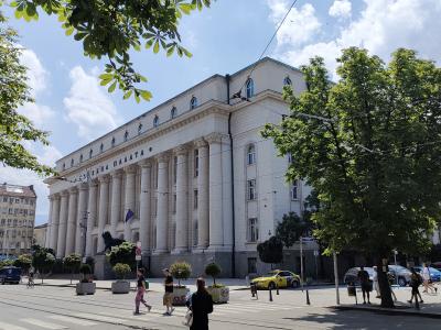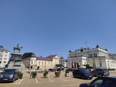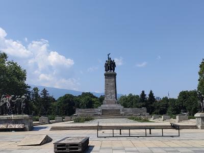 アレキサンドルネフスキー寺院の見学を終えて、ソフィア大学を横目に見ながらさらに公園内を歩いて行くと、大きな塔が見えてきます。塔の上には銃を掲げた兵士や数名の人たち、かたわらには多くの人たちが何かを称えるような様子の群像があります。おそらく旧ソビエト時代の遺物と思われますが、平和な公園の中にあっては違和感を覚えました。