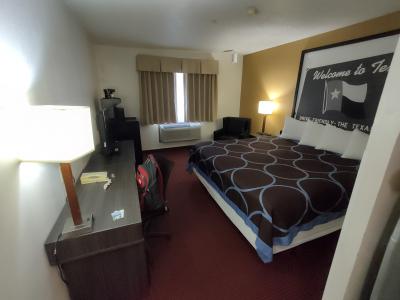 ダラス・フォートワース空港に19時到着、翌朝9時のカンクン行きに乗るため、空港周辺のホテルを探しました。空港への送迎のあるホテルを探したところ、ここがヒットしました。有名なスーパー8チェーンのひとつです。空港からホテルへはUberを利用しました。翌朝の空港への送りはホテルの送迎サービスを利用しました。部屋はやや古さを感じるものの、1泊だけなら許容範囲です。