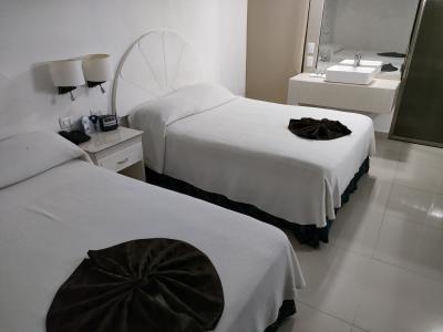 カンクン市内のバスターミナルの目の前にあります。ビーチからは離れていますが、プールもあり、リゾート気分を出しています。ホテル自体は古さを感じますが、きちんと清掃がされているので問題はないと思います。ホテル近辺にはレストランや売店も多数あり、困ることはないと思います。