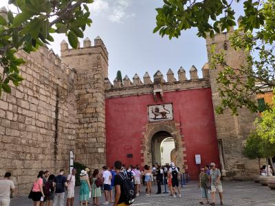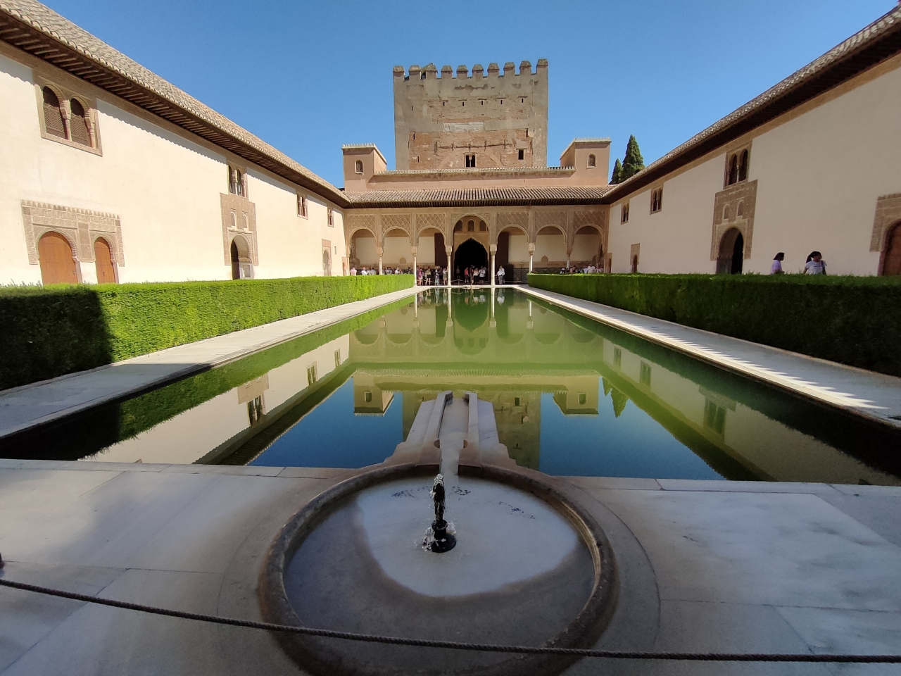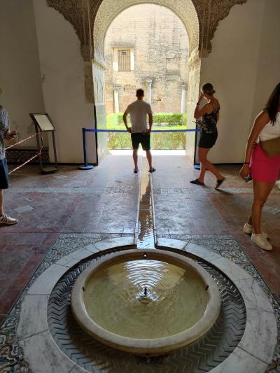 グラナダにあるアルハンブラ宮殿を見学したあとなので、どうしても比べてしまいますが、ここも立派な宮殿です。イスラム様式の装飾や水を利用した施設など共通するものがたくさんありました。宮殿の庭も見どころがあり、暑い中にも関わらずたくさんの人が見学に訪れていました。