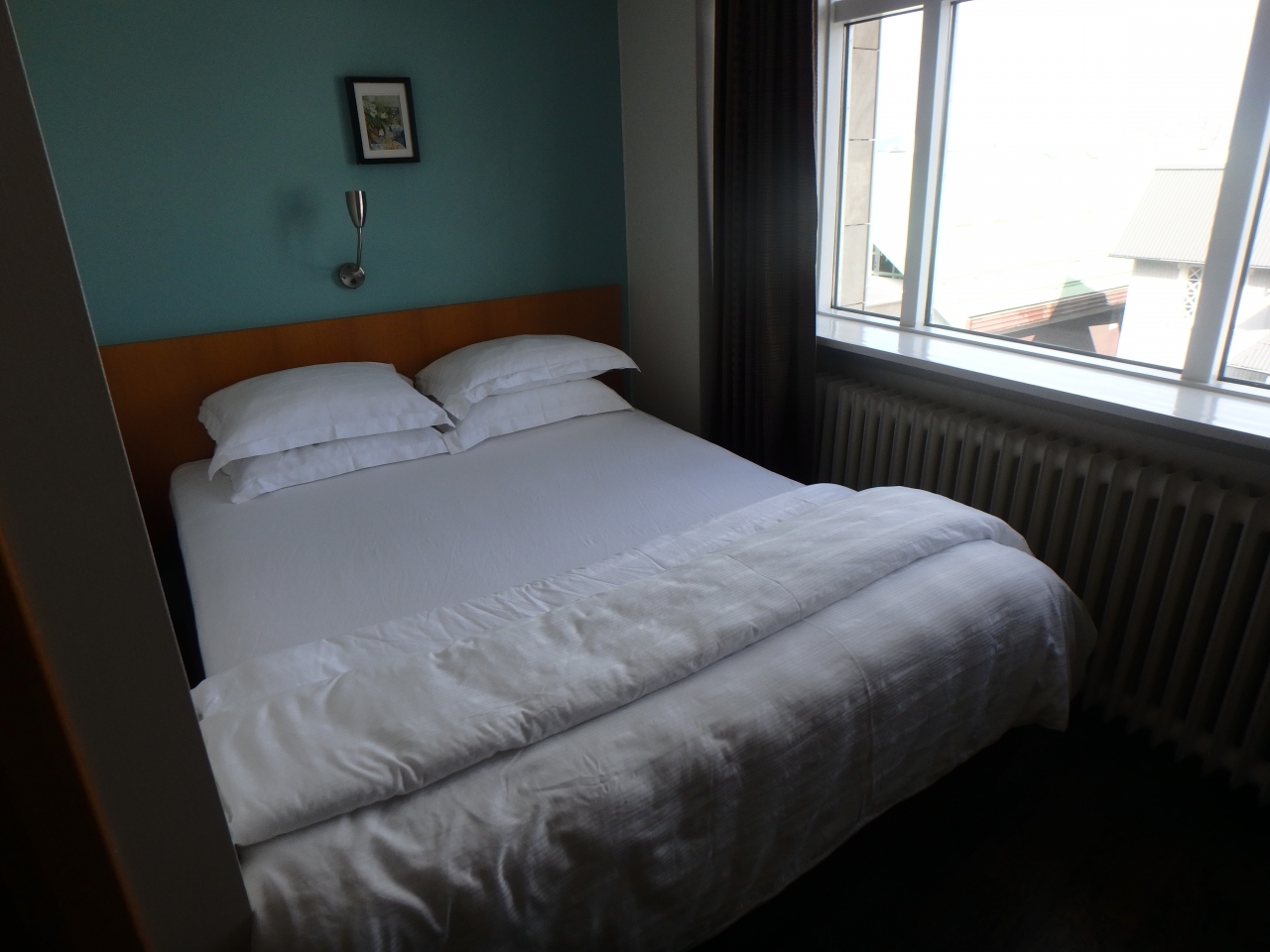 交差点の角に入口がありますが、鉄の扉一枚でとてもホテルの入口ドアとは思えません。ドアを開けるとレセプションが見えるので、やっとホテルだと実感できます。受付の方は皆さん、とても親切でいろんな情報を教えていただきました。ありがとうございました。部屋はやや狭いですが、十分だと思います。大聖堂や市民ホール等は徒歩圏内にあります。朝食はやや質素ですが、十分楽しめました。