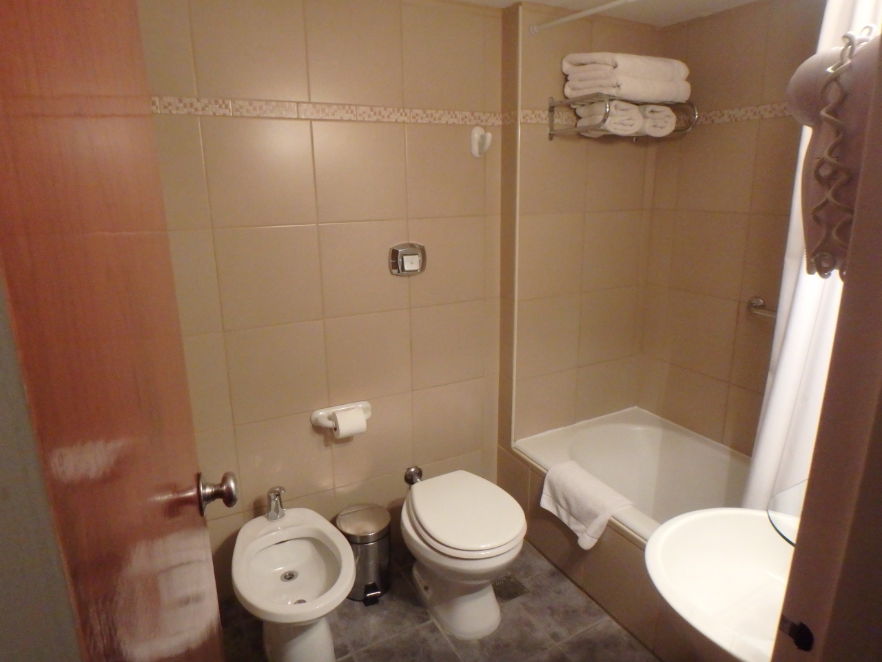 オベリスクの近く、5月広場や国会議事堂へも徒歩圏内の位置にあります。7月9日大通りに面しているのですが、騒音は気になりませんでした。ホテルの2階に一応レストランはありますが、メニューも少なくあまりお勧めしません。ホテル近くにはレストランが多数あるので外に出たほうが良いと思います。ホテル自体は古いかもしれませんが、清掃や手入れが行き届いていて快適でした。