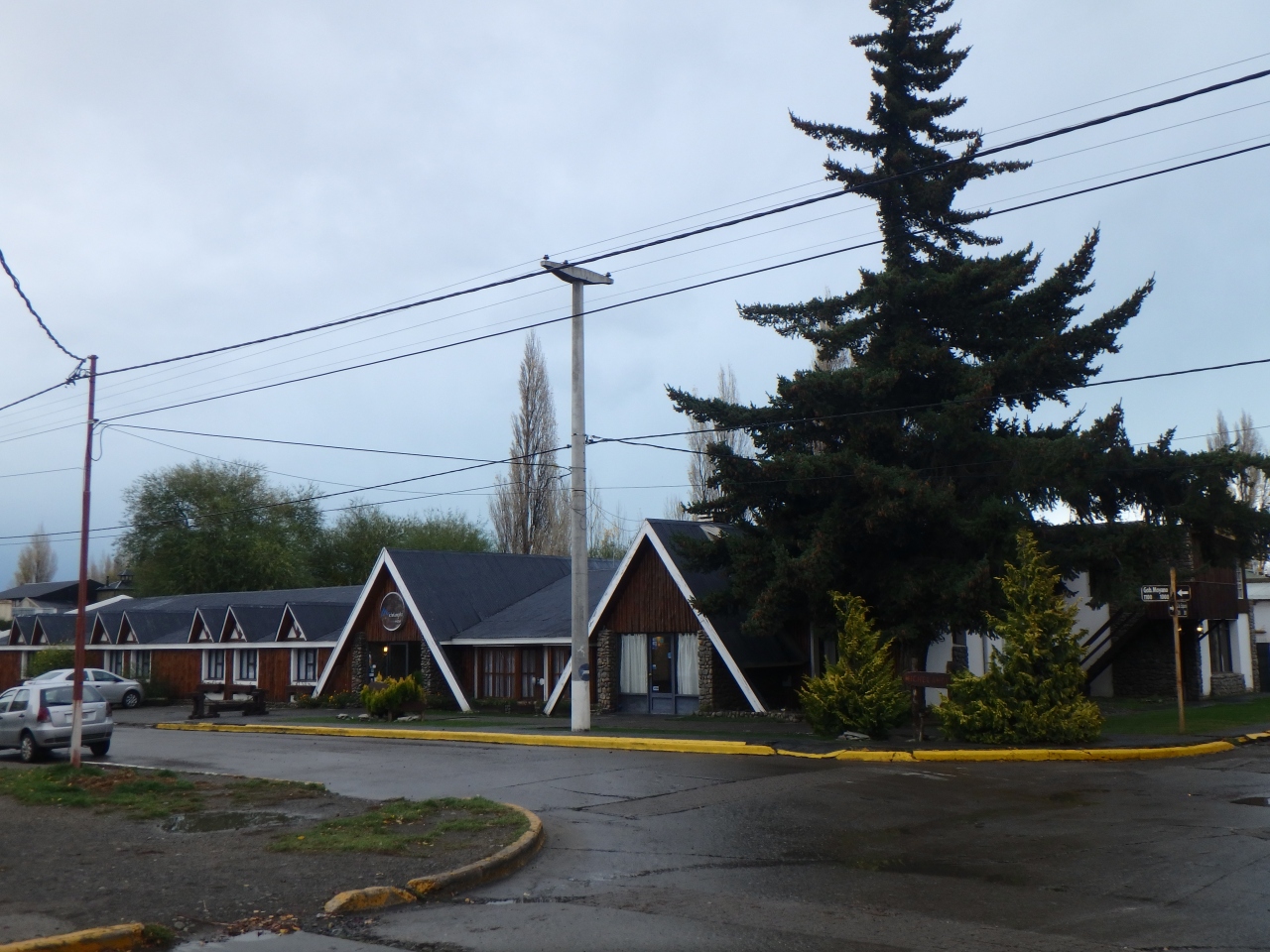 カラファテ市内中心部、メイン通りの2ブロック北にあります。メイン通りにはツアー会社やレストラン、スーパー等があり、どこも歩いて行ける範囲です。三角屋根のユニークな外観なのですぐ見つけられると思います。Wi-Fiは部屋でもつながりました。朝食はシンプルですが十分だと思います。到着した夜に停電があり、少々驚きましたが、その夜だけでした。