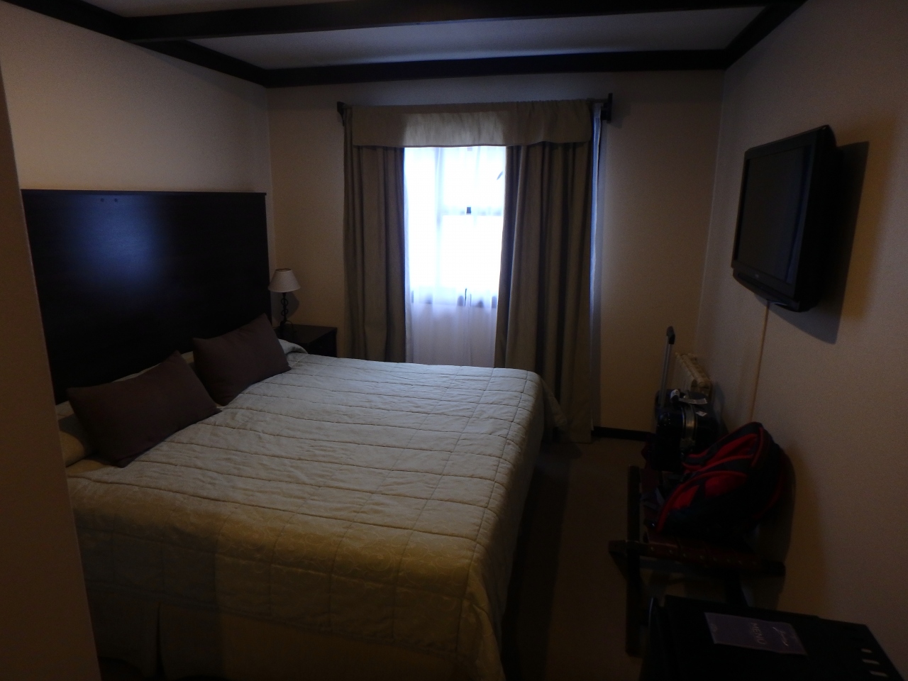 ウシュアイアの空港からタクシーで10分程度、港に近い便利な場所にあります。ビーグル水道の観光船が発着する桟橋は目の前にあります。玄関前には少々階段があるので大きな荷物があればちょっと厄介かも。ホテル内のレストランも港が見えるところにあるので、雰囲気は良いです。部屋はきれいで部屋からも港が見えます。バスタブがあるのは有難い。