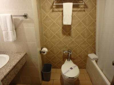 ニューヨーク、特にマンハッタン地区はどこもホテルが高い。その中でも比較的コストパフォーマンスに優れていると思います。地下鉄の駅やバス停も近くにあるし、タイムズスクエアやクルーズ船乗り場は歩いて行けます。ホテルは高層のためエレベータ利用が必須ですが、少々待つことが多かった。朝食会場が狭いので部屋に持って帰って食べる人もいました。その時はプレートを貸してくれます。部屋はやや狭いが仕方ないのかな。清掃は毎日きれいにしてくれました。