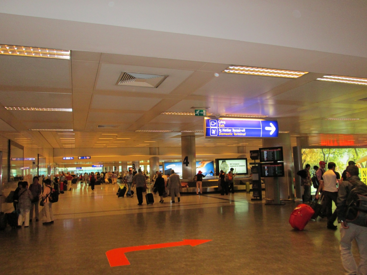 成田からのトルコ航空直行便は12時頃、成田を出発、18時頃に到着します。ちょうどその時刻は到着便が多いのか、イミグレが混雑します。いろんな国の人が混ざり合って、中にはせっかちな国の人も多く、時間がかかります。それでもイミグレ担当者はのんびりしたもので、なかなか進みません。ここはイライラせずにゆっくりを気を落ち着けて並びましょう。
