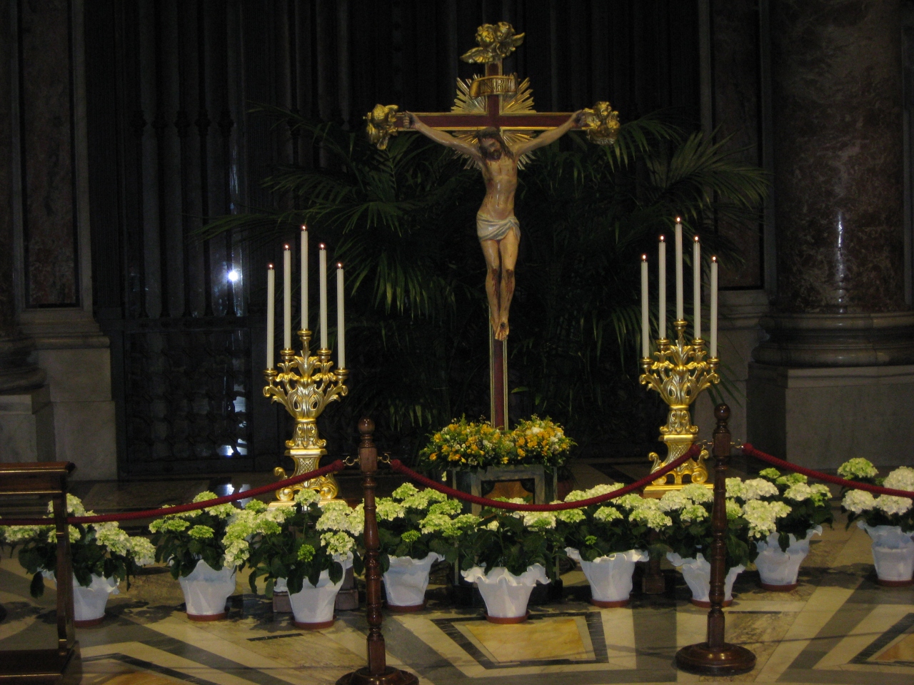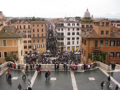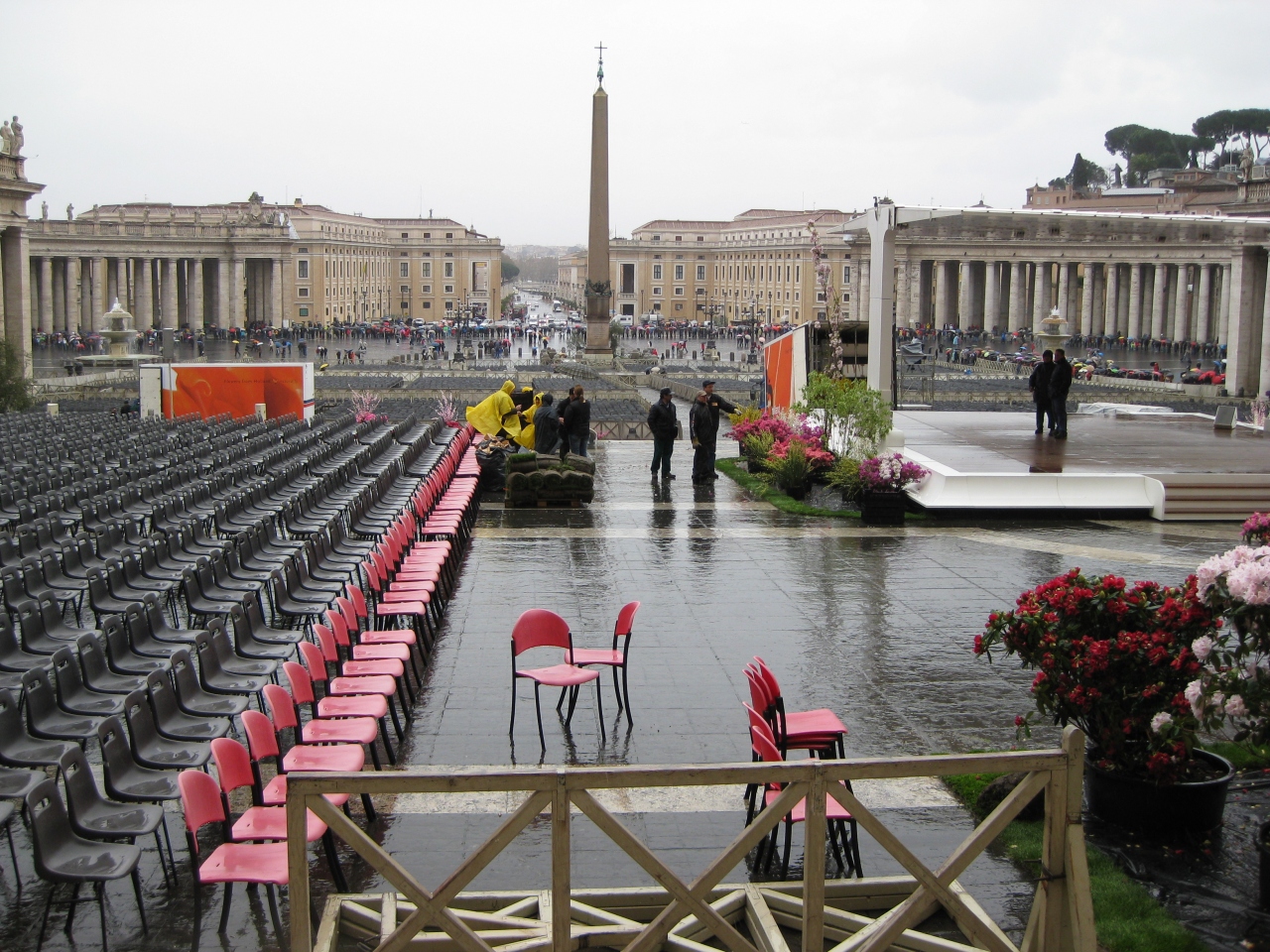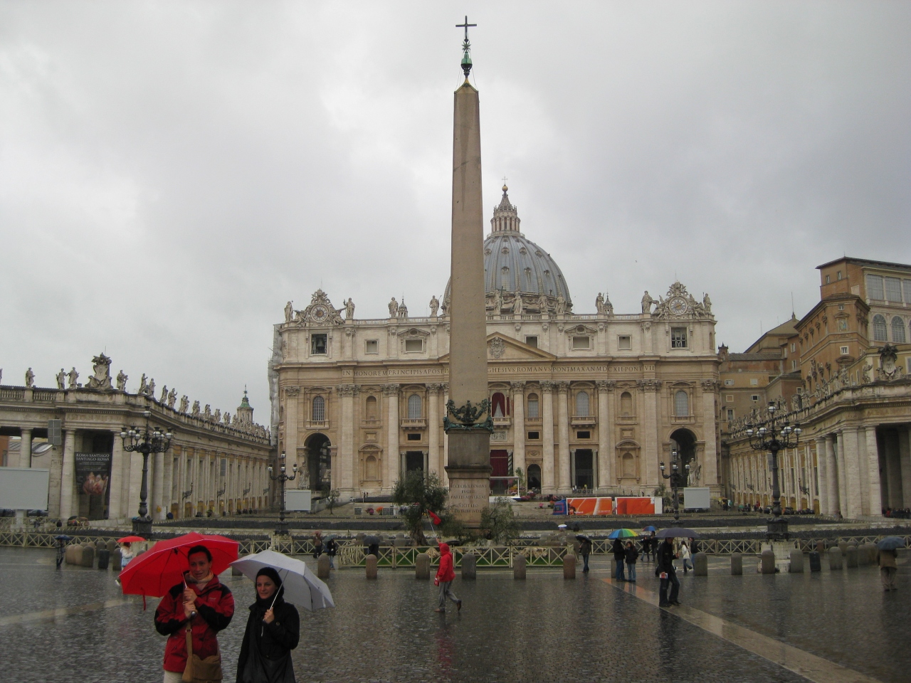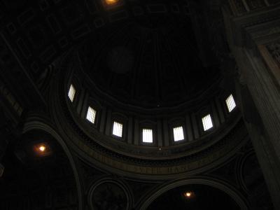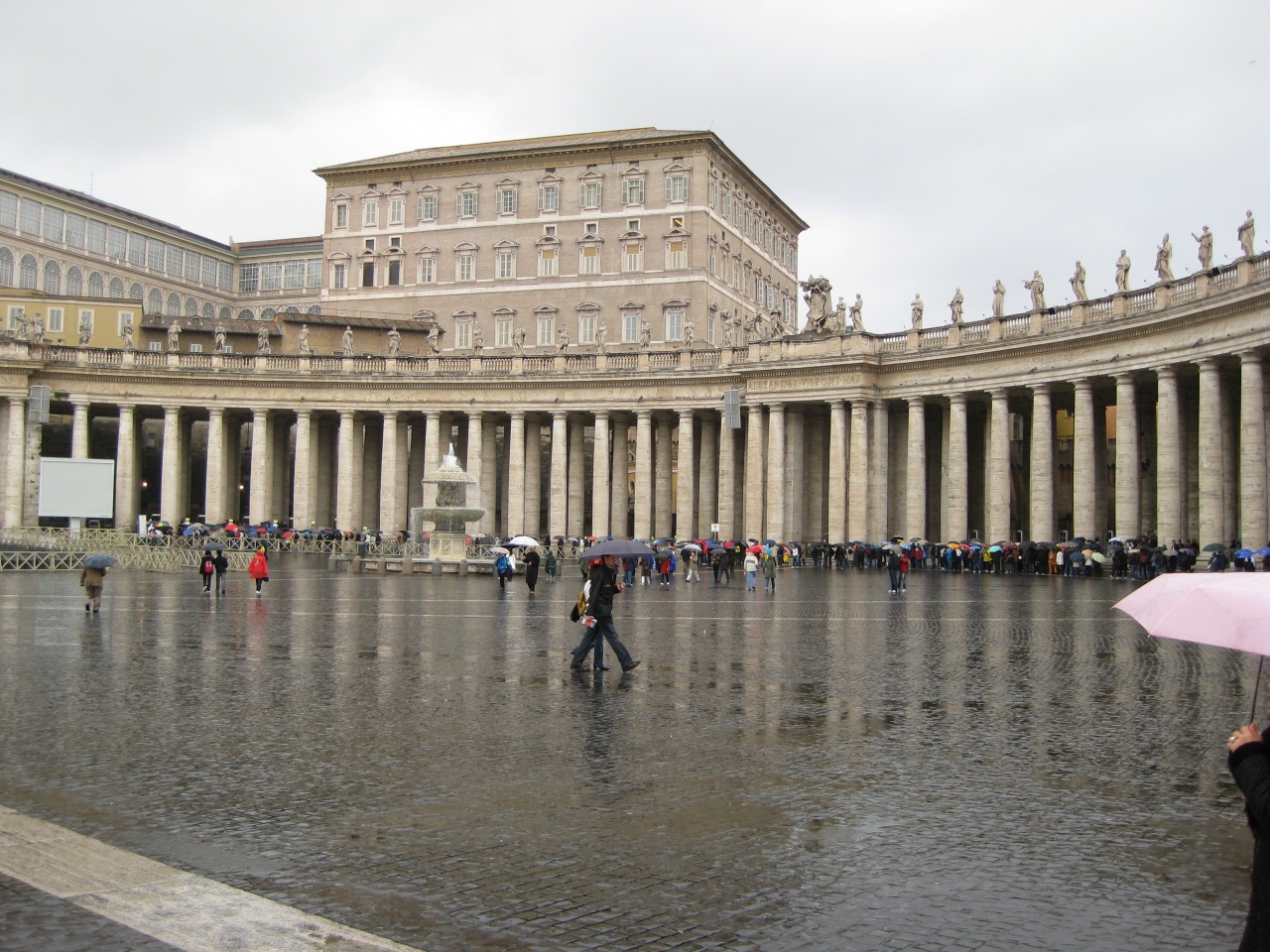 その広さ、大きさに圧倒されます。広場を取り囲む円柱の列、何列あるのでしょうか、多すぎて数える気にもなりません。またその上に配置された彫像の数々、息をのみます。中は少し薄暗いですが、その装飾の立派なこと。きっと値段には換算できないと思います。全世界のキリスト教徒憧れの地でしょうね。