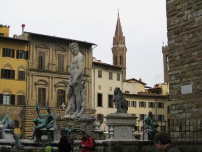 ヴェッキオ宮殿の前にありますが、宮殿の大きさに目を奪われていると、見落としてしまいそうです。世界中には、特にヨーロッパには多くのネプチューンの泉があるそうです。ここはその中の一つ、1565年に完成したそうです。ローマのものも有名ですが、こちらのほうができたのは古いそうな。